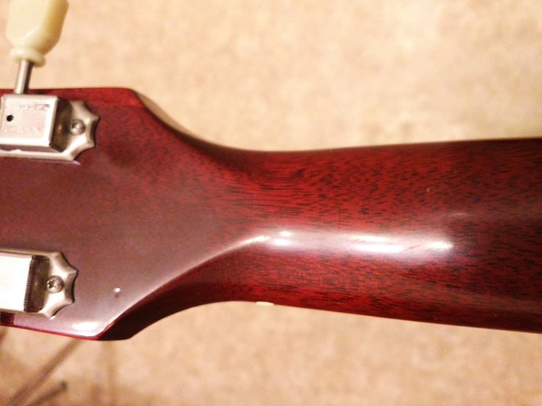 Косметическое состояние с лицевой стороны приличное, но видно что на гитаре много и активно играли. Сзади состояние тянет на благородный релик)