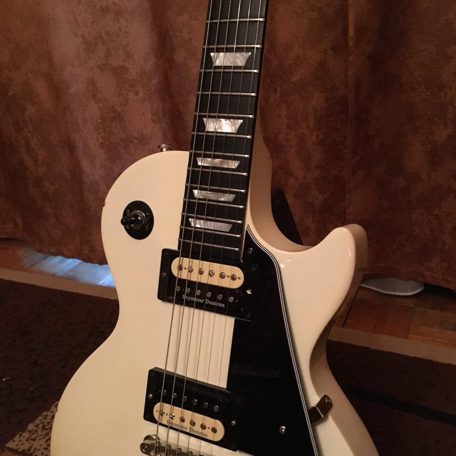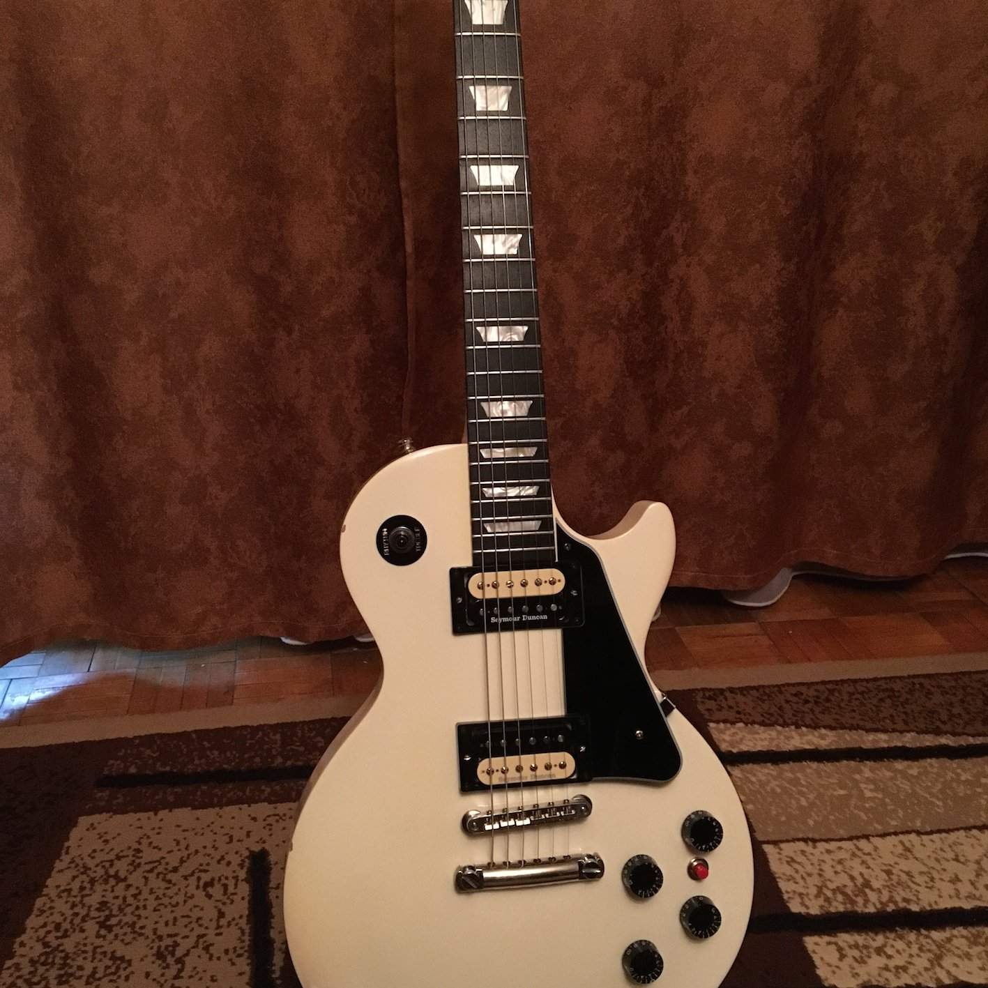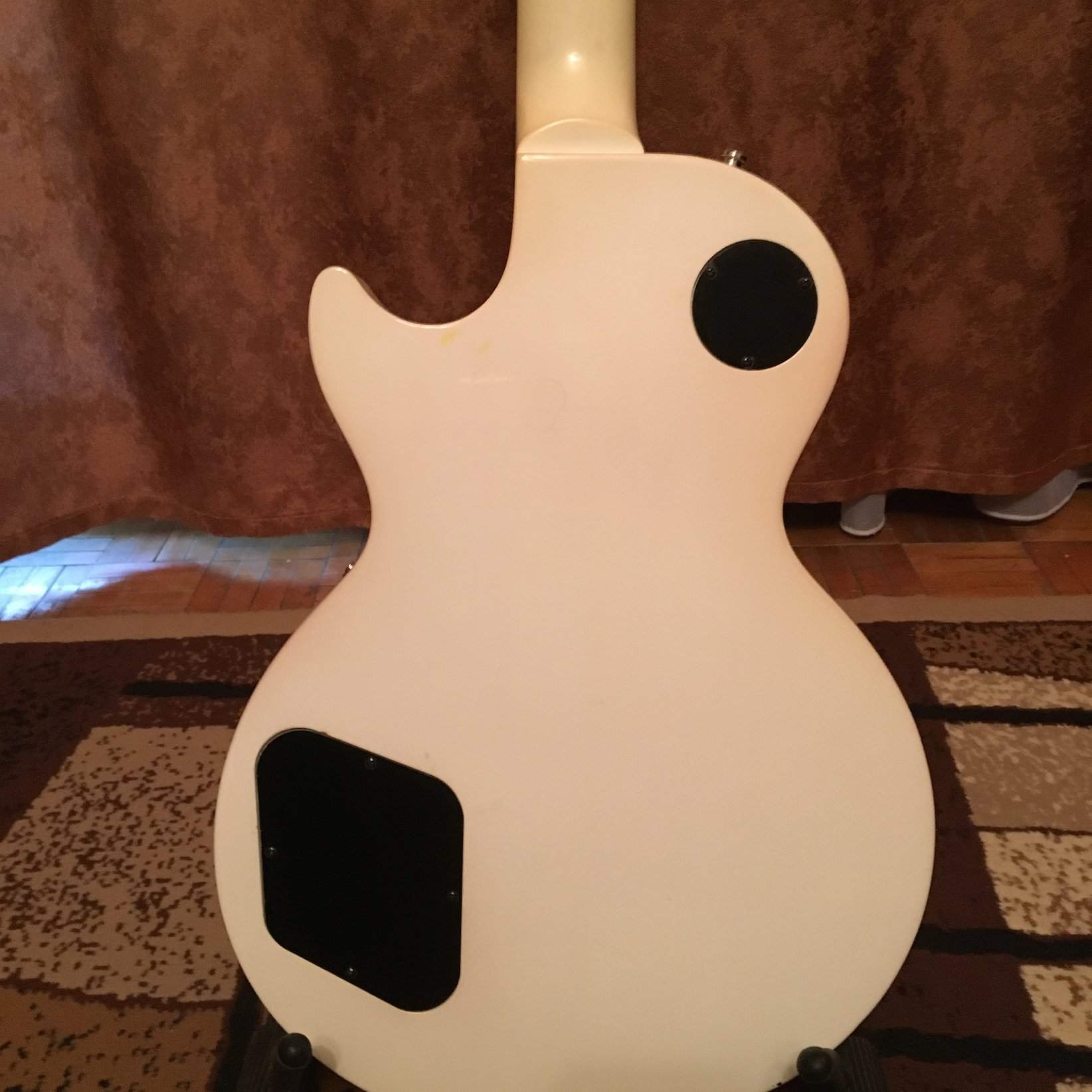 Продам Gibson Les Paul Studio Alpine White 2011г. Корпус - красное дерево с кленовым топом, гриф - красное дерево, накладка - чёрное дерево. Гитара в отличном рабочем состоянии, косметика на 5-, есть пара маленьких коцок на рёбрах, гриф, лады, анкер, колки, электроника - всё в идеальном состоянии. Цвет белый, скорее кремовый винтаж. Сделаны интересные апгрейты: