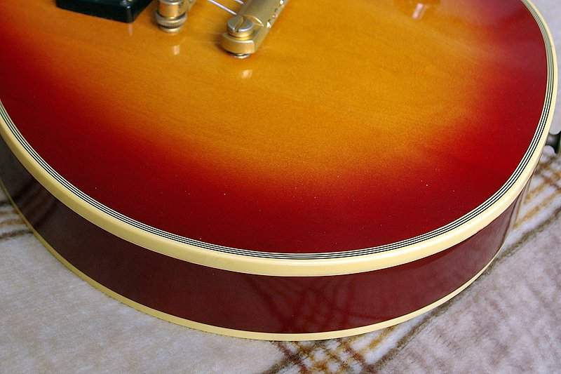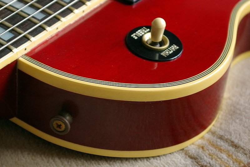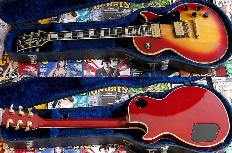 Звукосниматели PAF Tim Shaw (воссозданная в 80-е годы на Гибсон копия первых хамбакеров 50-х годов), звук винтажно- мягкий. Накладка эбони, лады низкие. Отличное дерево на деке ( 4 кг), такого веса у Кастомов уже давно нет. Верх из трёх кусков клёна, гриф красное дерево.