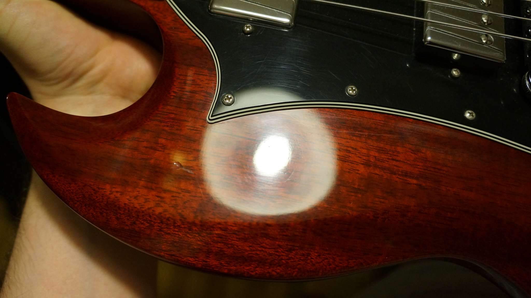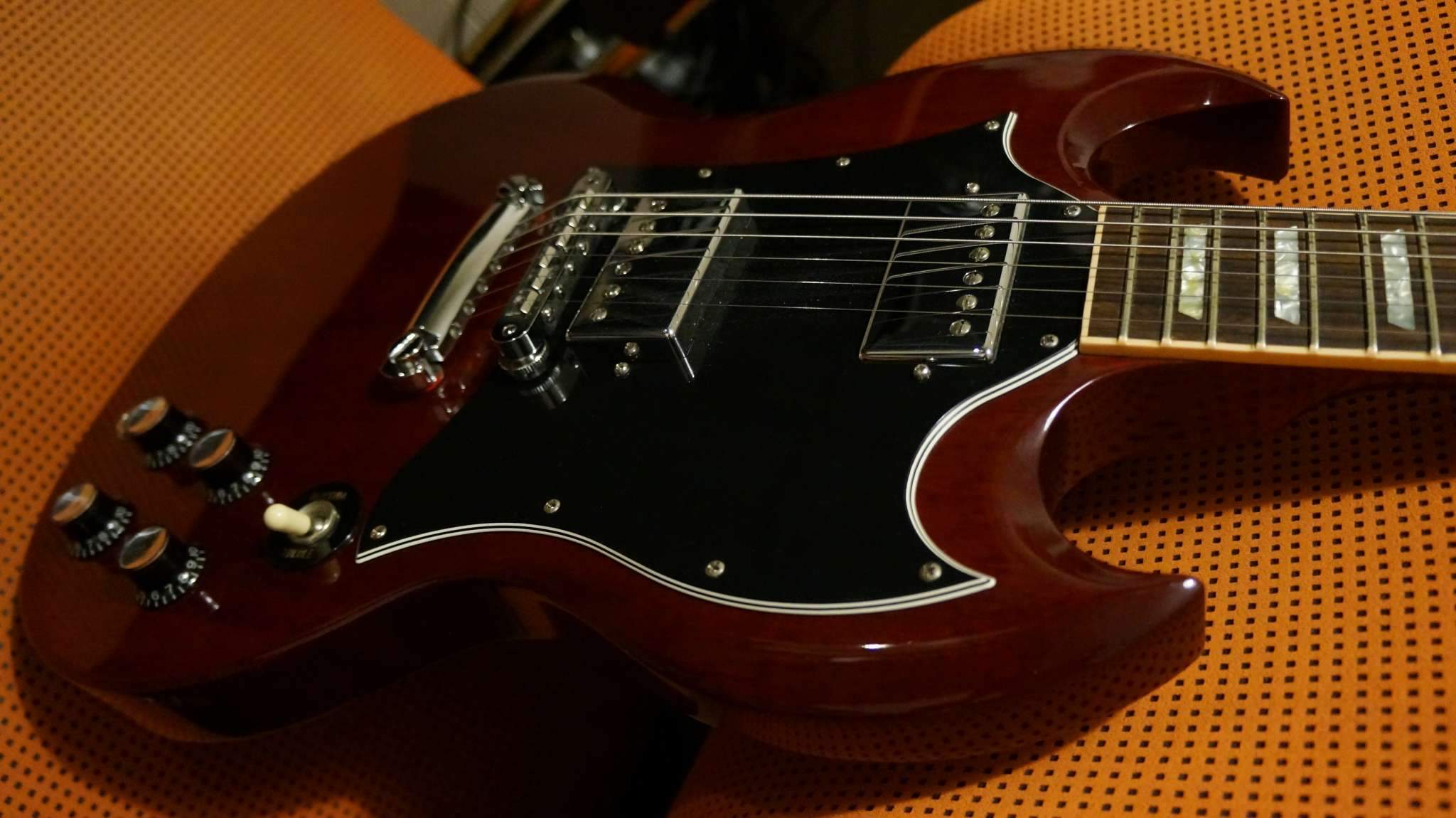 Гитара красивая - и краснуха деки, и палисандр в накладке выглядят шикарно, но главное, что звучит очень круто - как и полагается добротной SG.