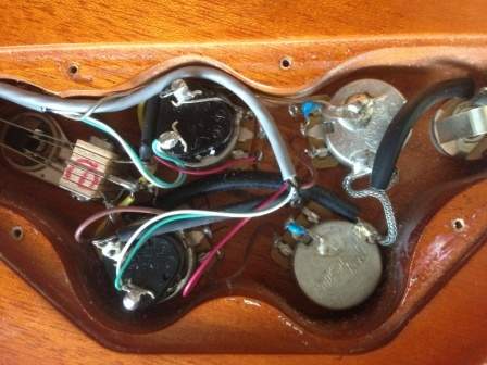 На обоих регуляторах громкости установлены push-pull потенциометры, для отсечек катушек у каждого датчика и включения режима синглов (singl coils).
