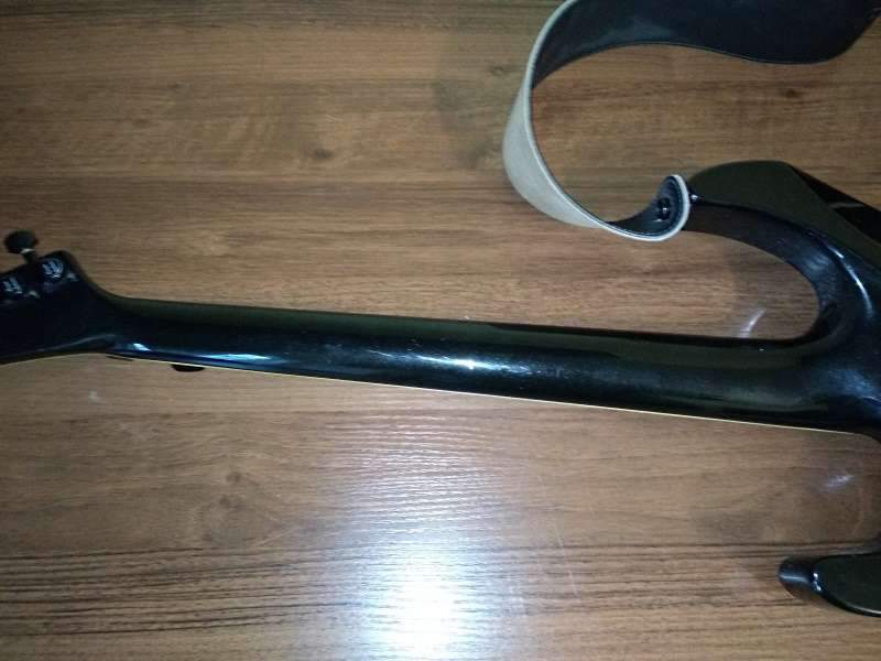 Состояние хорошее. Из недостатков: немного шуршит громкость, два небольших (1-2 мм) сколов лака, две небольших (до 1 мм) вмятины лака. Других недостатков и проблем нет. Звучит отлично, лады не сношены, накладка в отличном состоянии, строй держит отлично.