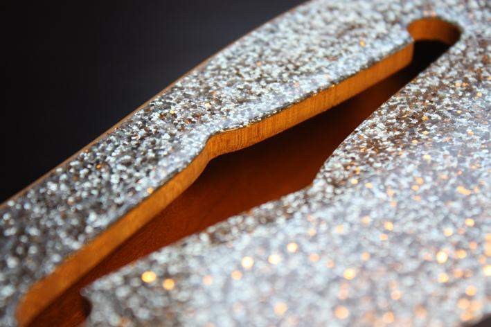 - корпус махагон с кленовым топом. Окраска Silver Metal Flake, замечательно работает на сценическом свете
