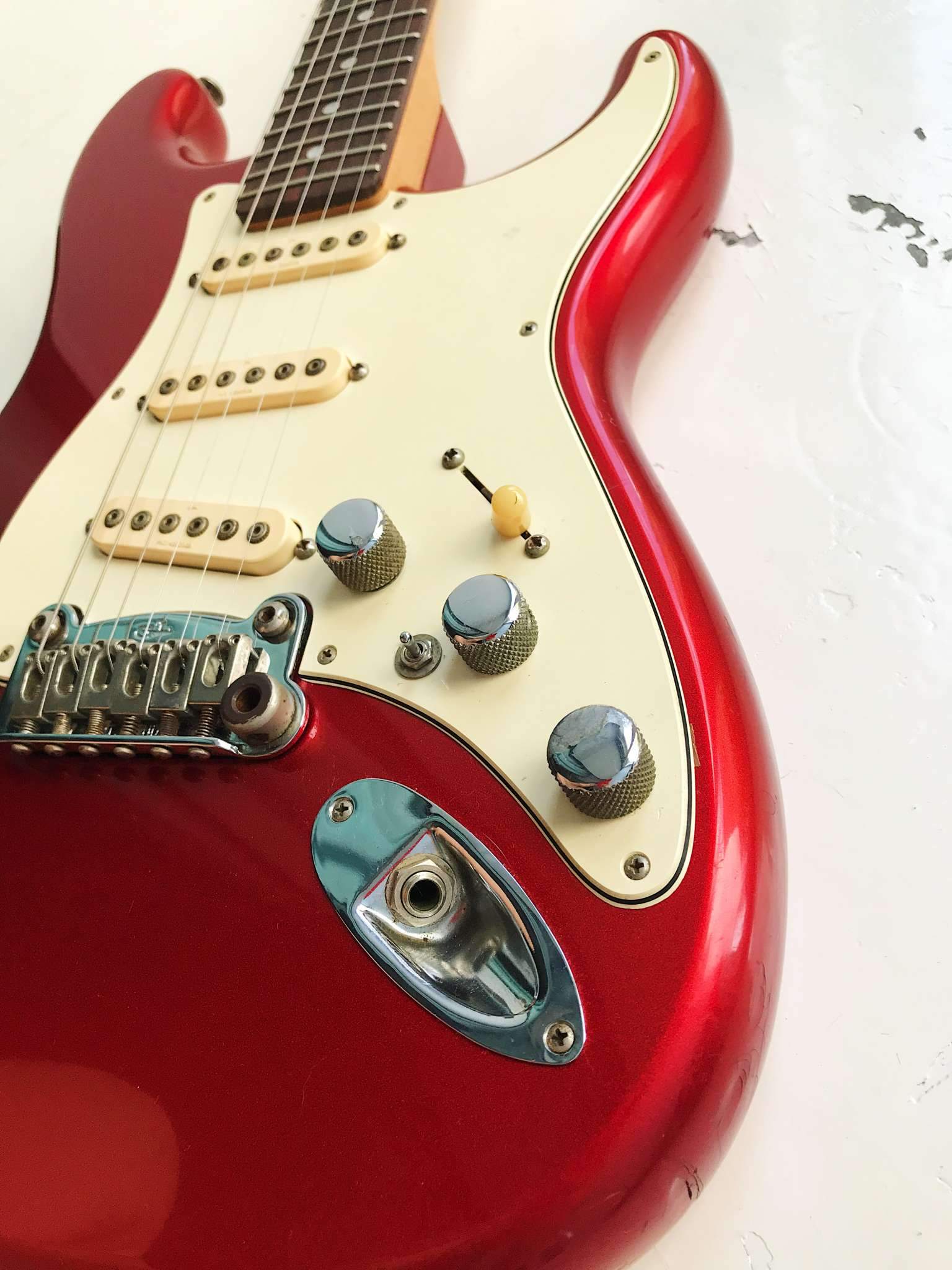 Функционально все отлично, по косметике есть коцки по деке и потёртая тыльная сторона грифа.