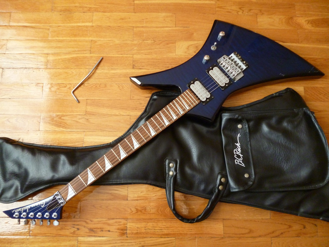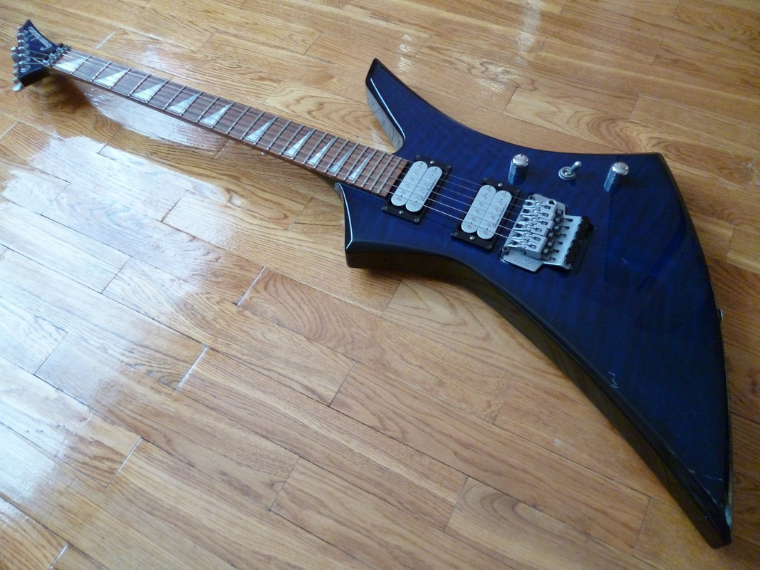 Бодрый тополевый японский тру-сквозняк с зубами и палисандром на накладке аж 18-летнего возраста (да, ей уже можно!) - тем не менее, до наших дней гитар дожил в весьма бодром состоянии: живые лады, ровный гриф, японские датчики (что редкость для этой модели). Кроме всего прочего - очень секасный цвет, который сверху синий и огненно-кленовый, а сзади черный. В общем, можно брать и смело идти в бой - все отстроено и круто.