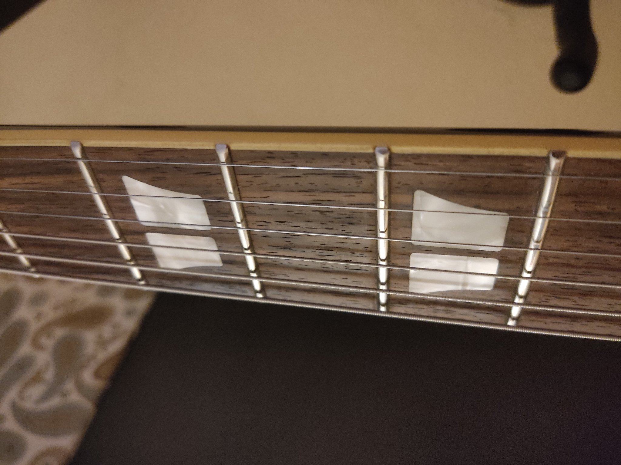 Лады установлены по системе CFS, пятка грифа скошена - для доступа к верхним ладам.
