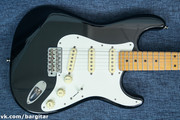 Отличный японский стратокастер, производства знаменитой фабрики Fujigen. Классический стратокастер, избавившийся от всех конструктивных недоработок оригинального прообраза, например анкер регулируется со стороны головы грифа. Рабочая поверхность грифа покрыта матовым лаком. Circle Fretting System (C.F.S.) - запатентованная Fujigen система установки ладов с легким радиусом, обеспечивает более чистый строй. Звукосниматели дают яркий, классический стеклянный звук стратокастера, более глубокий в нековой позиции и звонкий фанковый в бриджевой. Состояние отличное. Гитара отстроена для комфортной игры, струны низко, играть удобно.