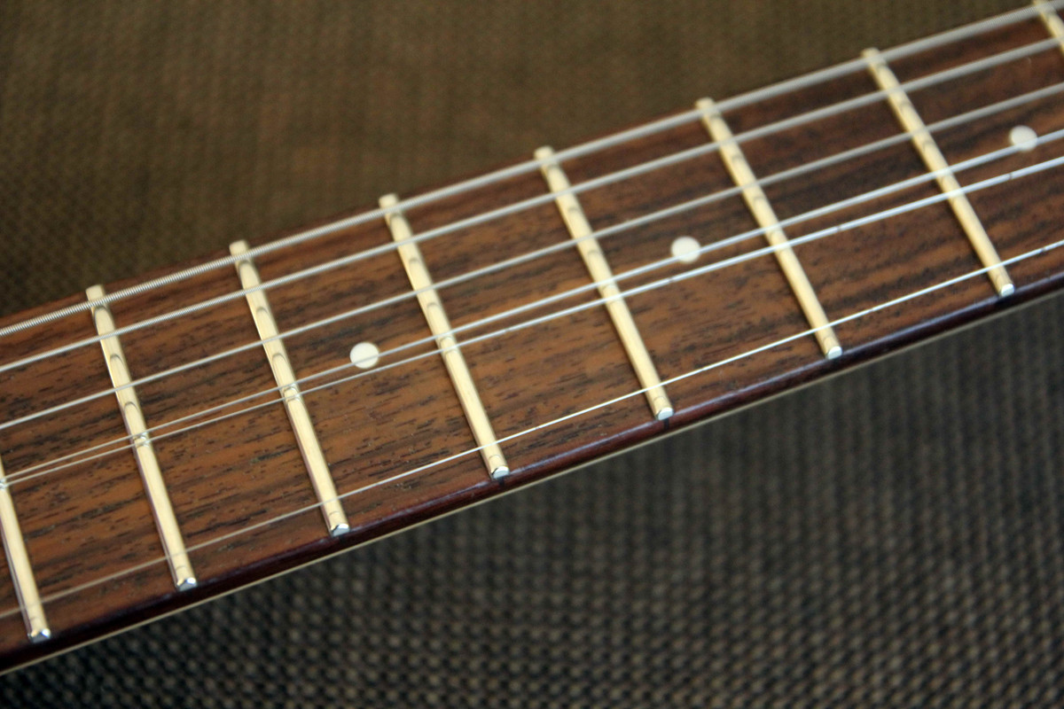Инструмент в идеальном состоянии: технически без нареканий, косметически - есть пара малозаметных сколов. Тремоло работает безупречно, ножи и седла не сточены, опоры не болтаются (я тремоло не использовал - оно было заблокировано).Громкость, потенциометр, тумблер - в идеальном состоянии. Стоят новые струны 9-46 Elixir.