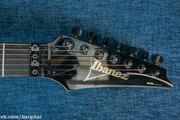 Сабж представляет собой отличную семиструнку от законодателя и новатора в среде подобных гитар компании Ibanez. Корпус из липы, привинченный гриф и фирменные звукосниматели от DiMarzio обеспечивают яркую атаку, сочный ровный звук и долгий сустейн. Два вкрученных прямо в корпус хамбакера обеспечивают более яркий и открытый звук, весьма тонкий гриф располагает не только к мясистым риффам, но и к быстрым поливам, все удобно и легко играется. Звучание инструмента четкое и насыщенное, в отличие от некоторых краснодеревянных гитар, здесь нет бубнежки на низких нотах, седьмая струна даже в Ля хорошо читается и сочетается с любыми усилками. Вообще гитара располагает как к мясу на пониженных строях, так и фанаты Стива Вая найдут в этом инструменте много близкого и хорошего.