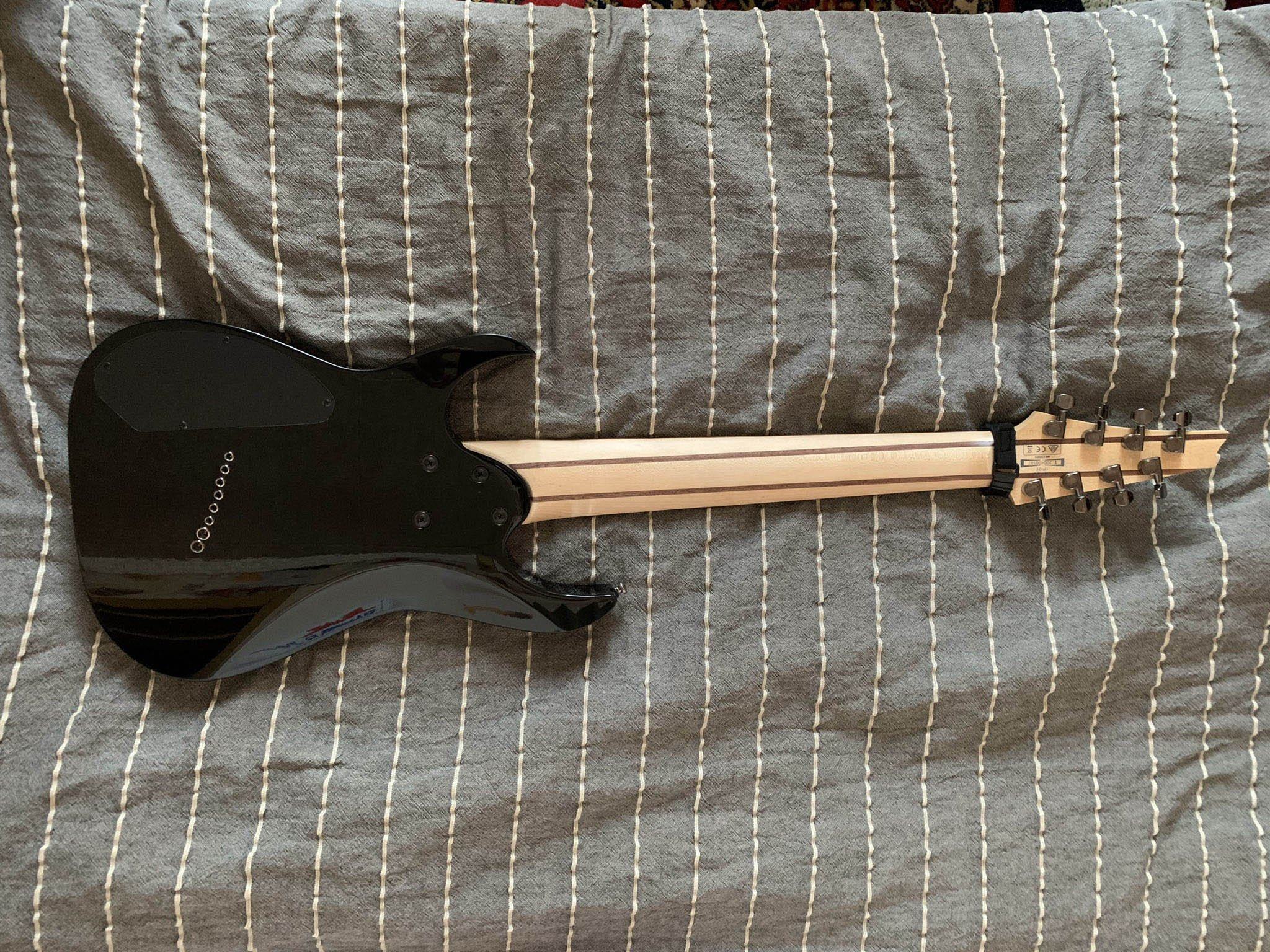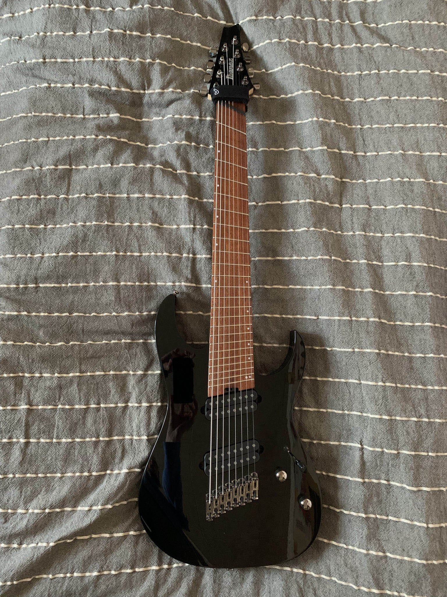 IBANEZ RGMS8-BK (продаю с мягким чехлом) - это 8-струнная электрогитара линейки RG. Цвет гитары черный. Гитара представляет собой настоящую рок-машину, способную шикарно звучать в пониженном строе. Инструмент обладает мощным, насыщенным тоном, что важно для передачи тяжелых гитарных рифов нестандартного строя электрогитары. Электрогитара оборудована 5-составным грифом (клен/орех)с накладкой из жатобы. Профиль грифа - Wizard III-8 for Multi Scale 5pc. Дека гитары сделана из махагони. На деку установлен бридж Mono-rail bridge. Количество ладов грифа - 24 (Jumbo), мензура - 692 мм/27.26" - 648 мм/25.5".