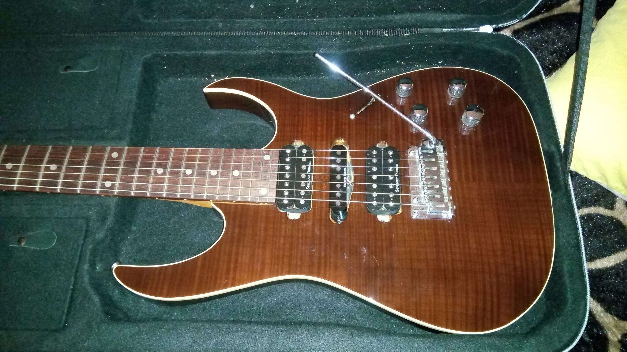 – датчики хамбакер/сингл/хамбакер позволяют получить любую палитру звучания. Средний сингл сейчас не установлен, но имеется в наличии. По желанию покупателя могу укомплектовать различными датчиками DiMarzio / Seymour Duncan.