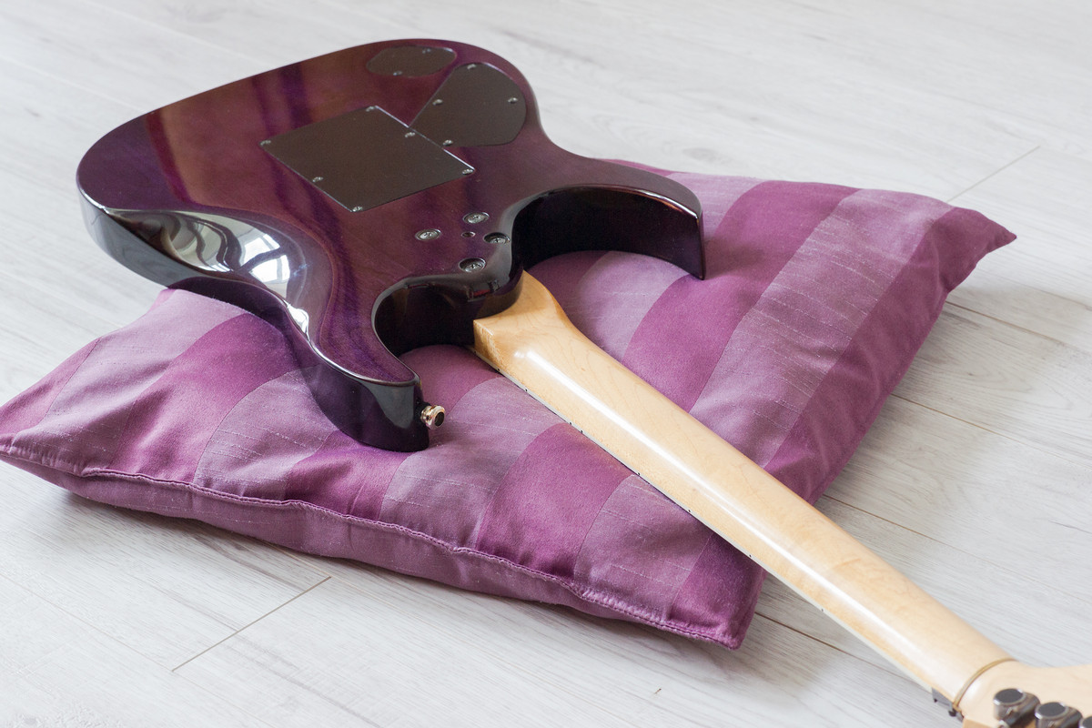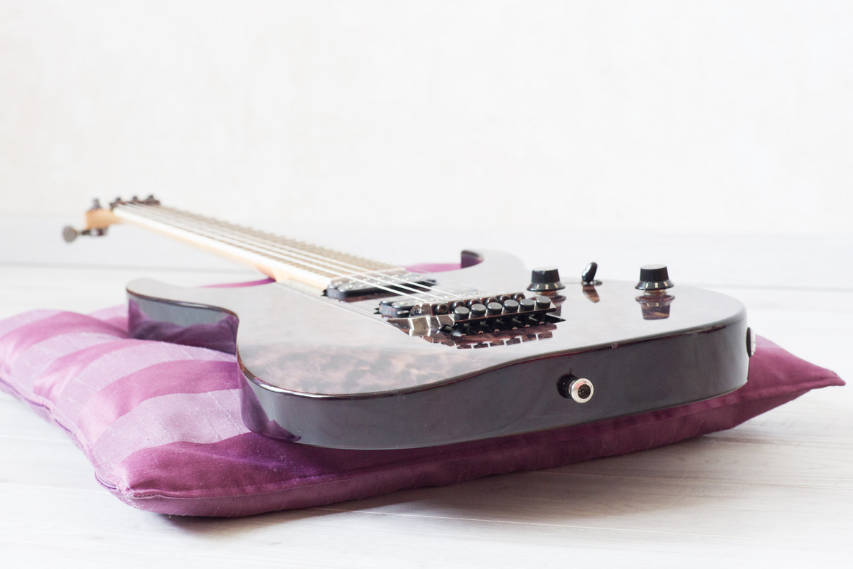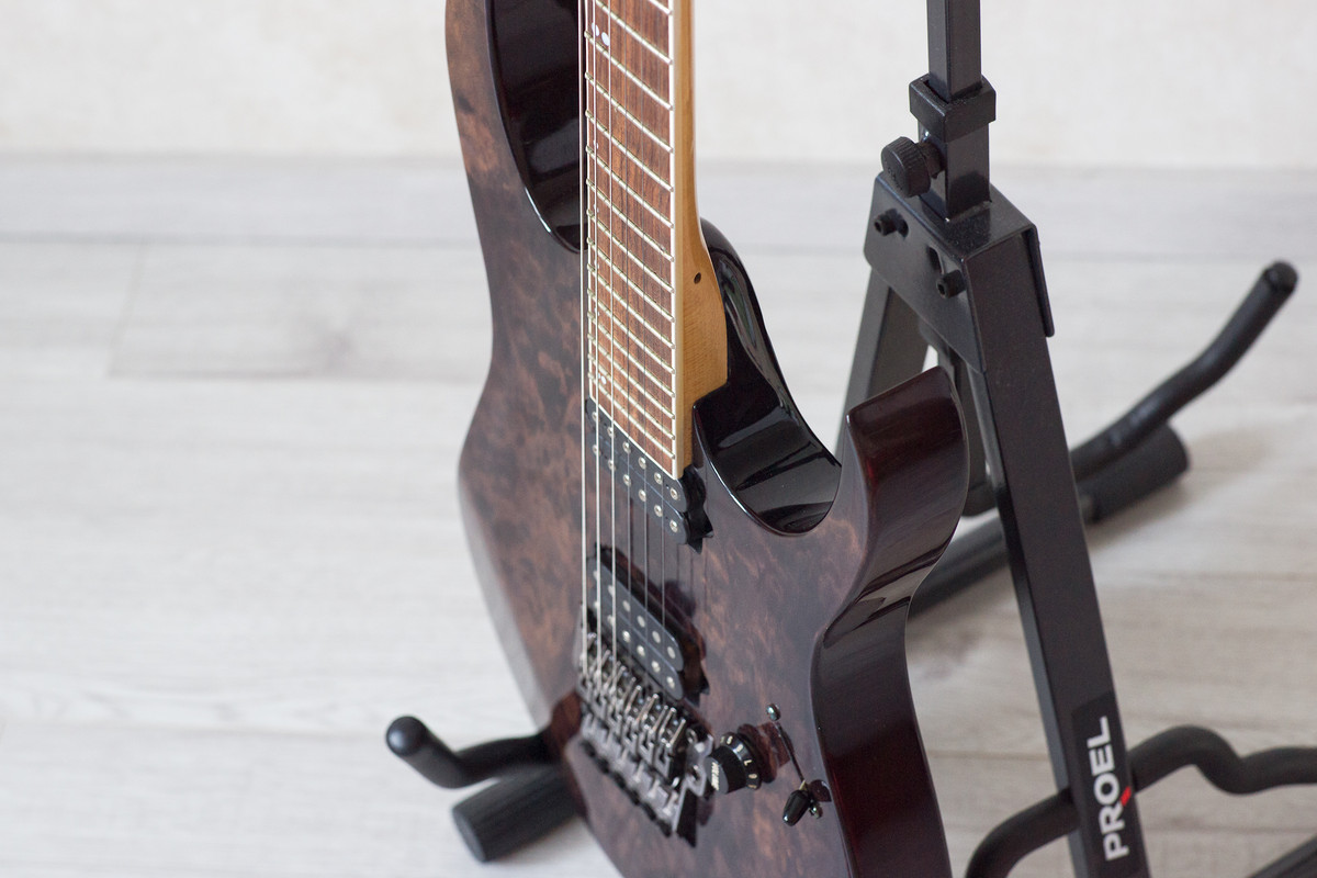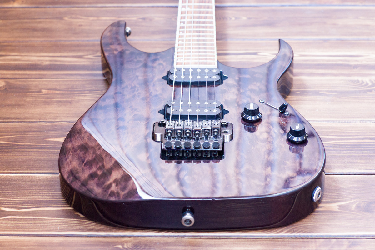 На гитаре присутствуют несколько стандартных микросколов, все видно на фото. Рычаг от Floyd Rose утерян.
