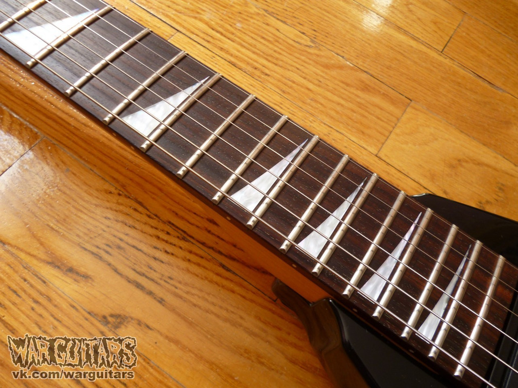 Ставшая классикой модель джексона - японский РР3, который сняли с производства в далеком уже 2011-м (вместе с остальными японцами, что есть грустно-пичально, но ладно). Что можно сказать об этой гитаре? Как и остальные РР3 это хорошая рабочая лошадь, которая и выглядит-звучит нормально, и которую в случае чего не жалко гонять в турах/концертах, ибо недорогая. Технически по состоянию все очень круто, косметически - есть скольчики там и сям, ничего серьезного, никаких щепок на рогах и прочего. Кстати, из приятных особенностей - оказывается, хромированная фурнитура подразумевает пикгард не из анодированного алюминия, как это привычно хозяевам РР, а из настоящей, мать ее, хромированной стали. Это металл, понимаешь! Металл, из стали! Настоящий тру-металл! \ш/