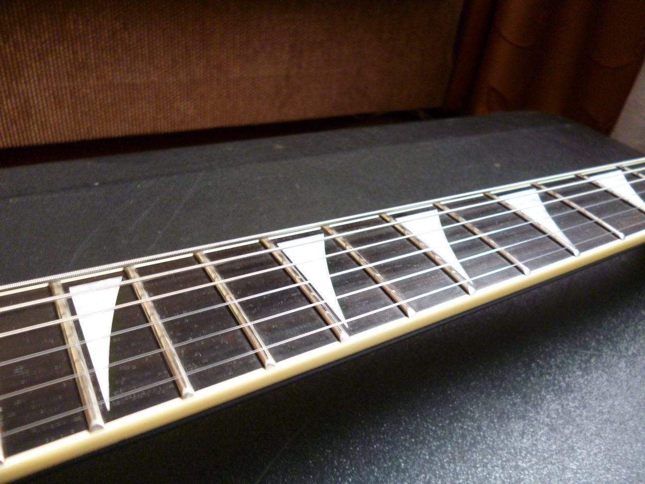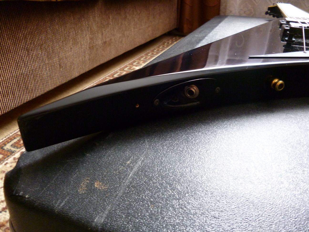 Состояние - 9.5/10, никаких царапин/вмятин, гитара практически в новом состоянии, гриф просто идеален. Полбалла снизил за то, что предыдущий хозяин просверлил очень аккуратно дырку под крепление ремня на роге как на гибсонах. Сделано очень аккуратно, можно туда впендюрить кнопку тоже. Стоят шаллеровские стреплоки (вернее, только кнопки от них). На фото все видно. Анкерную крышку думаю в скором времени достать.