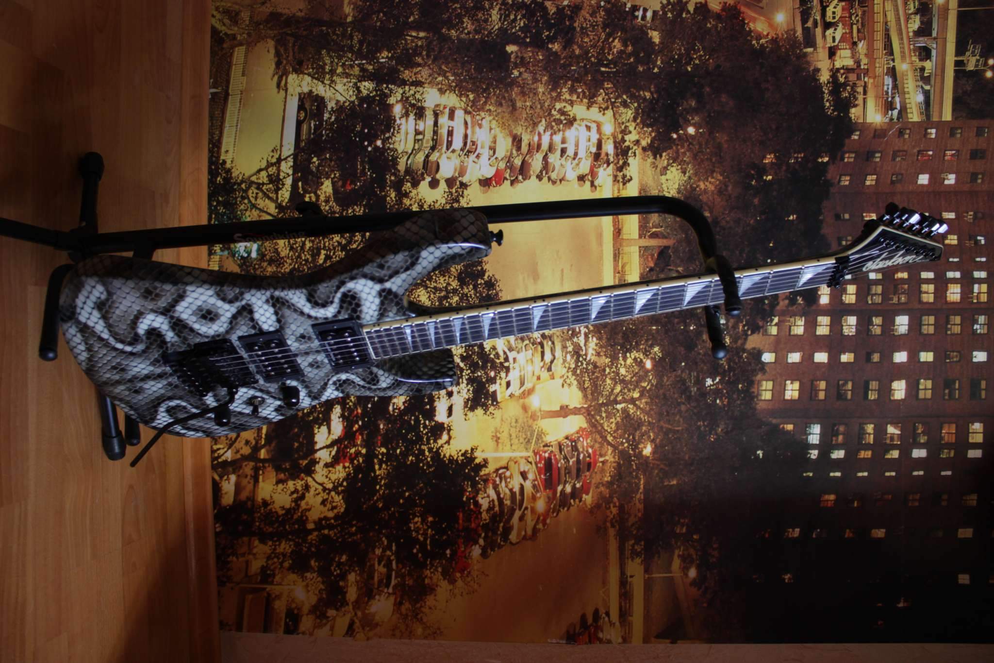 По спекам все по классике: тушка ольха, гриф клен\ебен. Датчики сеймура SH-1 и TB-4. Флойд как новый, по ладам тоже все ок. Ну и в целом состояние близко к нульцовому. В комплекте ключи и родной джексоновский кейс.