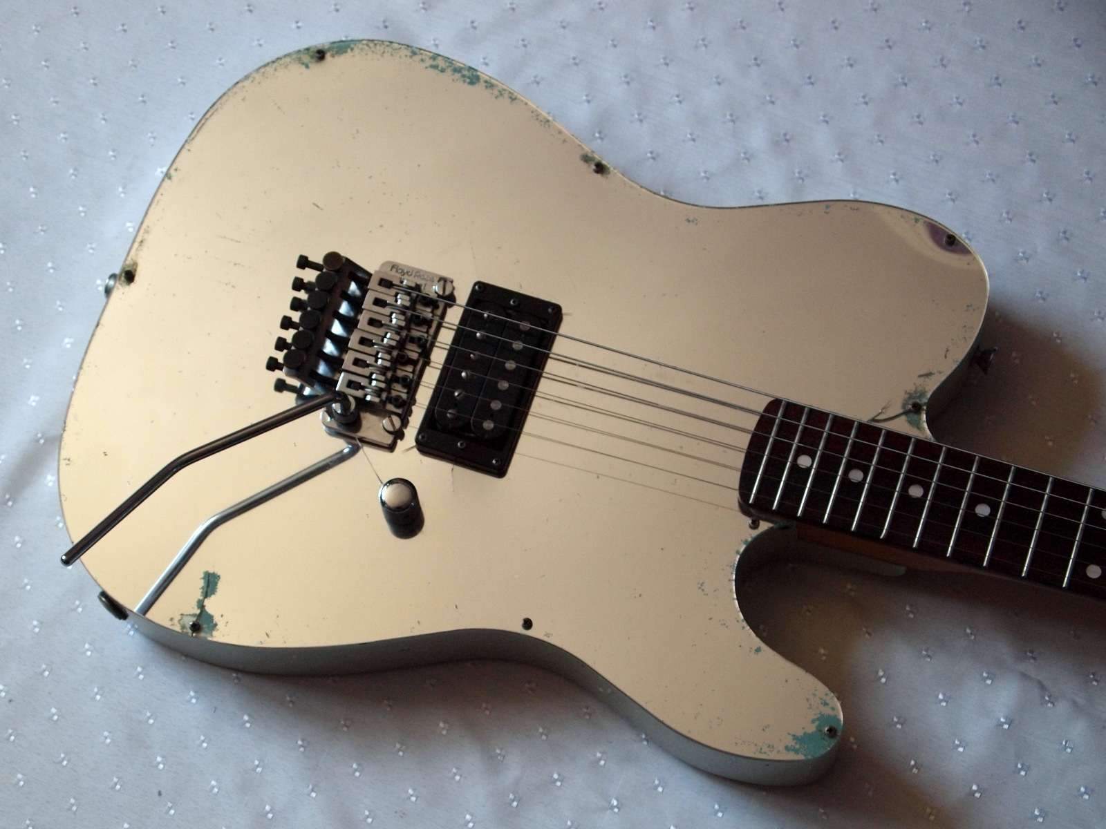 Kramer KM-1 Mick Mars Mirror Top Tele-именная модель Mick Mars которую можно увидеть в клипах «Kickstart My Heart» и «Same Ol Situation» выступлении Motley Crue на Moscow Music Peace Festival» и видео с тура «Dr.Feelgood», она выпускалась в конце 80-х крайне малыми тиражами, никто не знает точного количества, но все эксперты говорят что их сделано не больше 50 штук! Эта гитара настоящая библиографическая редкость, учитывая то как велика фэн-база Motley Crue по всему миру и то что у Мика Марса нет своих именных моделей с 90-го года, цены на его модели просто запредельны. Конечно это прямо квинтэссенция стиля 80-х-гитара оснащенная Original Floyd Rose, единственным бриджевым хамбакером и только ручкой громкости, вот и все регулировки, спрятаться некуда — либо ты играешь, либо нет. По одной из многочисленных легенд, окружающих Мотли Крю, такие Крамеры выпустили перед туром Dr.Feelgood (в котором их сопровождал собственный драг дилер) для того чтобы не бегать в туалет за дорожкой,а раскатывать ее прямо на зеркальном покрытии гитары.