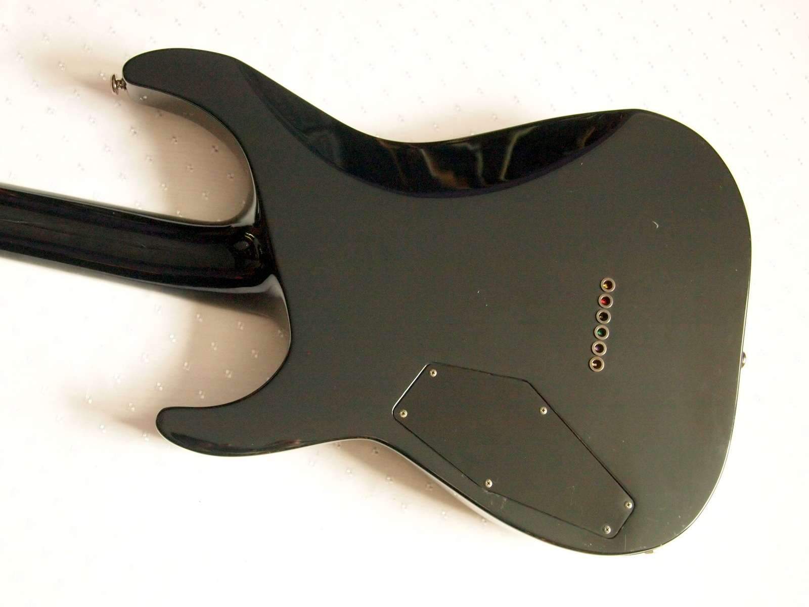 Невероятно красивый, потрясающе удобный инструмент с шикарным, современным саундом. Сквозной кленовый гриф с накладкой из черного дерева, , модерновые датчики Seymour Duncan Blackouts, ультранизкий экшн-все это дает возможность играть музыку любой тяжести, с полной отдачей, мгновенно перестраивая гитару в альтернативный строй. Кроме того инструмент невероятно красив-изготовлен с вниманием к мельчайшим деталям, полностью черный с кантом по деке и грифу из натурального перламутра, как на кастом шоповых ESP и ничуть не уступая им звуком