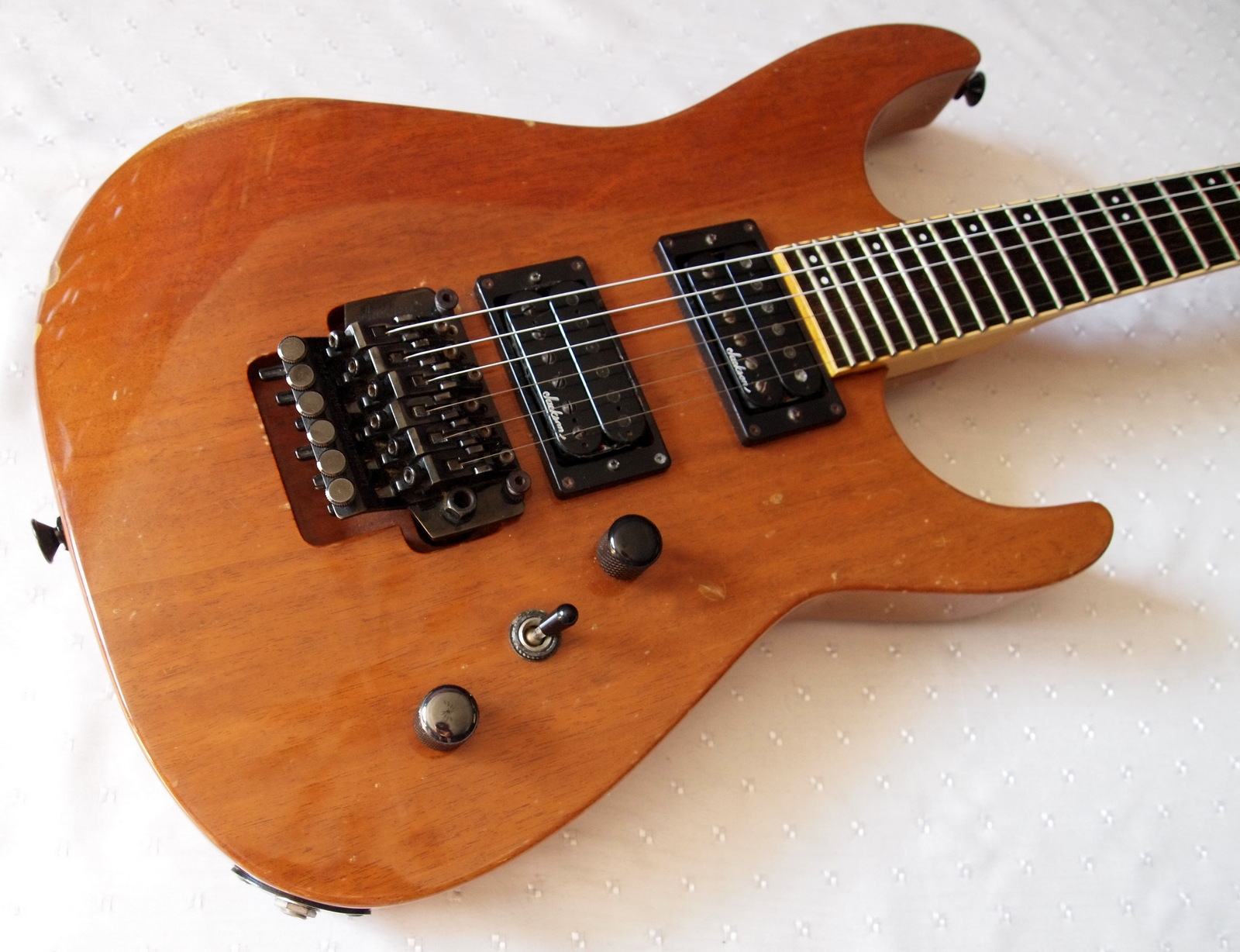 Отличный инструмент для тяжеляка -рык краснодеревянной деки сочетается с яркой атакой и мощными датчиками Jackson. На гитаре играли, внешний вид соответствующий, но механически инструмент полностью исправен и конечно же невероятно разыгран, невероятно отзывчив на каждой ноте, певуч и быстр в атаке.