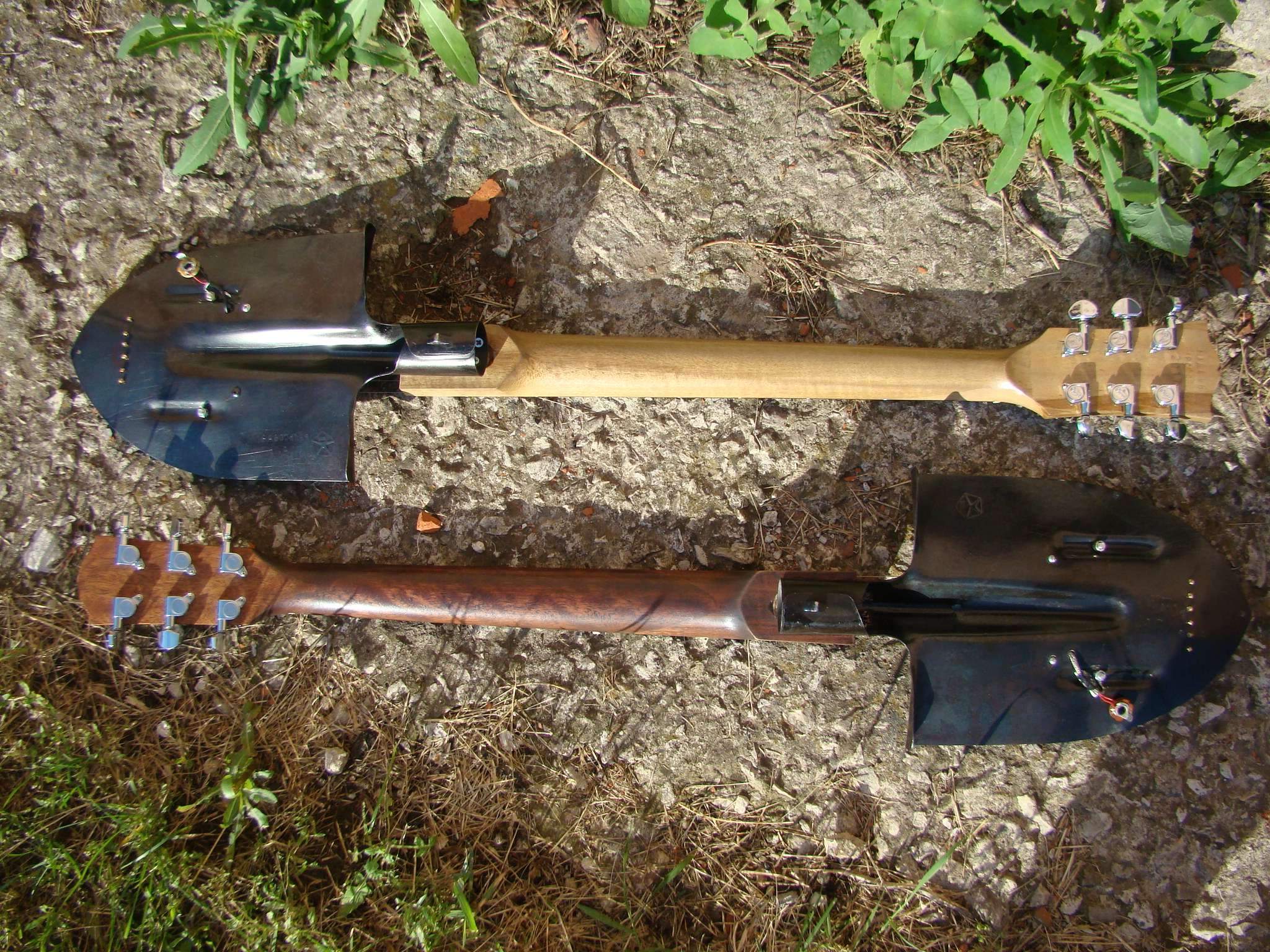 продаётся широко известная в узких кругах электрогитара, сделанная из лопаты. в количестве 2 штук. собственно говорить больше не об чем, гипсон стоит 8000, фендер 5000.