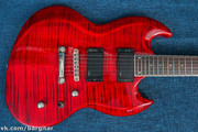 С одной стороны серия VIPER представлена гитарами знакомой многим формы "SG", однако нельзя не отметить значительные отличия - корпус имеет диагональную асимметрию, он слегка толще, да и сам характер инструмента - гораздо более агрессивный. Действительно, ESP LTD VIPER были созданы для "горячих" музыкантов. Электроника представлена двумя хамбами ESP Designed LH-301 - достаточно универсальная штучка, которая сгодится и для рока и для чего-то потяжелее. Неплохо гитара сочетается с большим гейном - мощные хамбы годятся как для традиционного харда, так и для современных стилей с пониженными строями. Гриф весьма удобный и в меру тонкий - шреддерам должен понравиться) В целом Viper-200 - удачный пример осовремененной классики. Такой инструмент придется ко двору и в хард- роковом составе, и не обойдут его вниманием метал-гитаристы - саунд в любом случае выдает гитара весьма достойный, а агрессивный имидж уже оценили музыканты самых разных стилей.