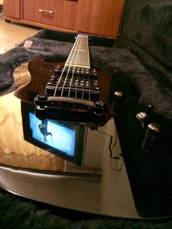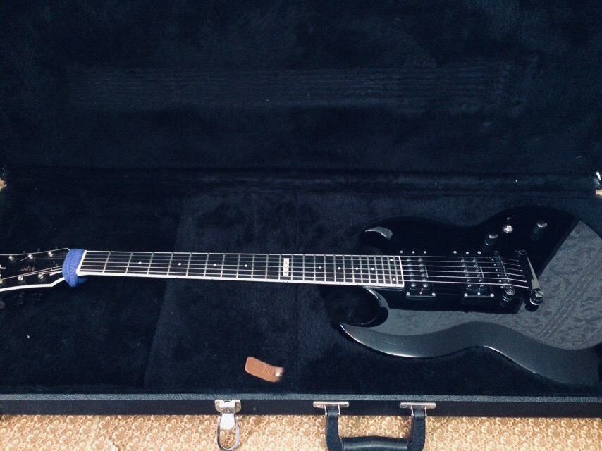 Инкрустации: точки/лого ESP на 12-ом ладу (все из перламутра); белая окантовка грифа и головы