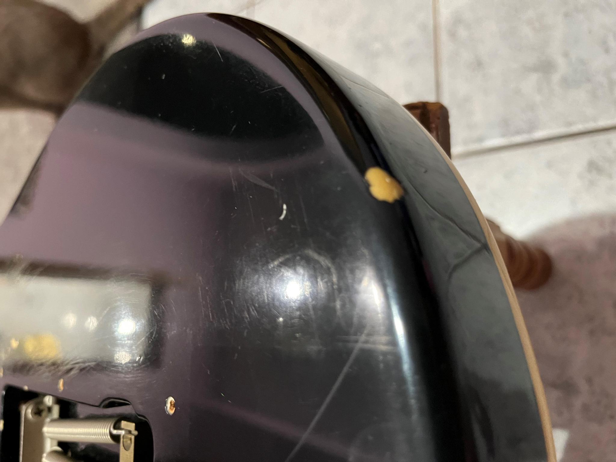 Комплектация у гитары вся родная кроме ручки громкости (она в комплекте, но "побитая временем") и нет задней пластиковой панели.