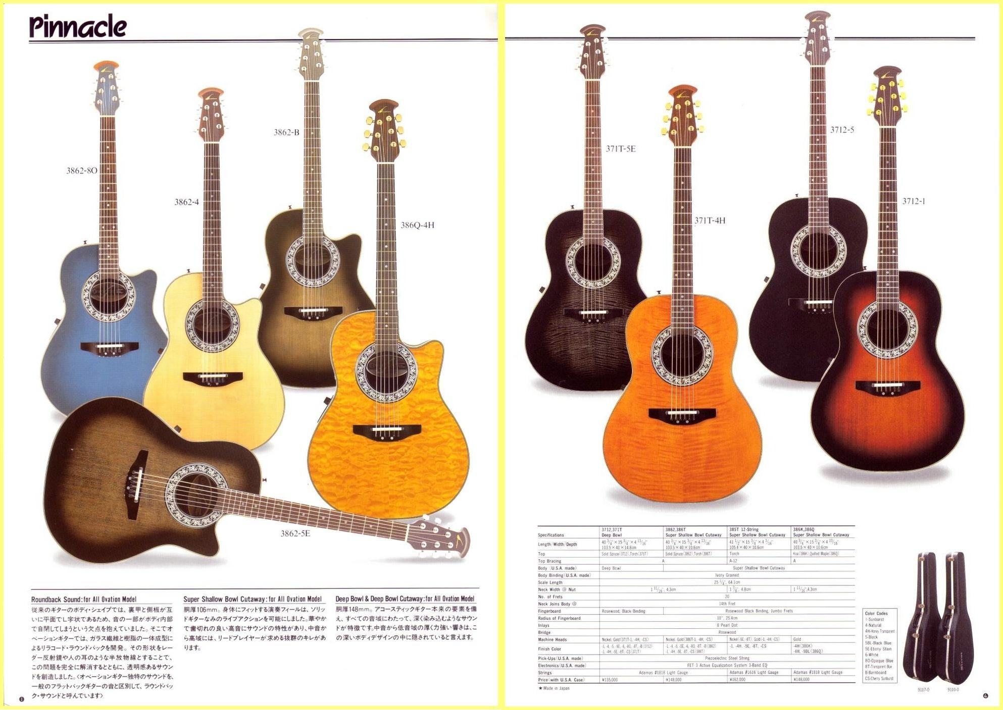 Рекомендованная цена в начале 90-х на Pinnacle 3862 была 148000 йен. С учётом инфляции и общего повышения цен, в то время это была огромная сумма для гитары. На эти деньги можно было приобрести в Японии неплохой подержанный автомобиль. Для примера, среднестатистическая гитара, бас гитара, электроакустика, стоили около 60000 йен. Пример, общеизвестный TAKAMINE PT-106- 60000 йен. ,Т.е. OVATION No. 3862 стоила в два с половиной раза дороже 106й.