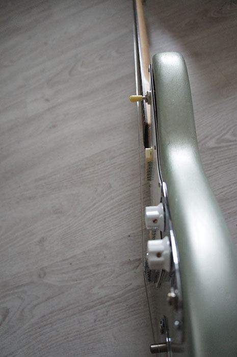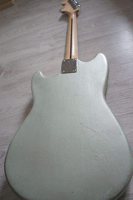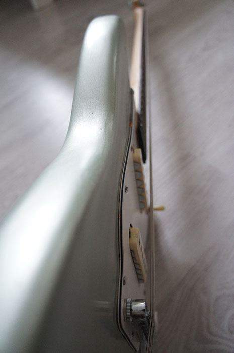 Т.к. корпус изначально был слегка потрепан (ему ж 50 лет уже), перекрашен, затем очищен и перекрашен уже тут, гитара не выглядит абсолютно новой.