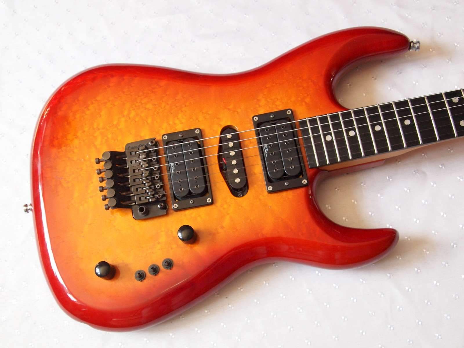 Инструмент невероятной красоты, в идеальном состоянии, очень удобен и отличается звонким, плотным и разборчивым звуком!!! Благодаря индивидуальным выключателям каждого датчика доступны множества вариантов саунда, а Floyd Rose Original железно держит строй.