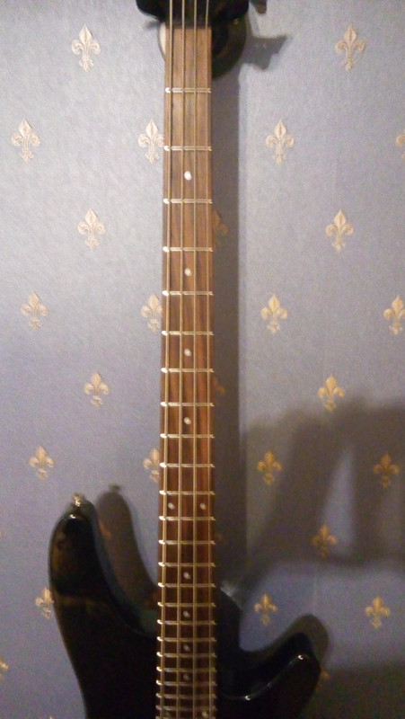 Продаётся отличный бас. Активная электроника (два хамбакера), 4 струны, 1 общая громкость, 1 регулировка баланса датчиков, регулировки низких/высоких частот. Кленовый гриф, дека предположительно агатис. Универсальный бас, хотя и заточен (вроде) под тяжёлые стили. На этой неделе побывал у мастера, всё отстроено.