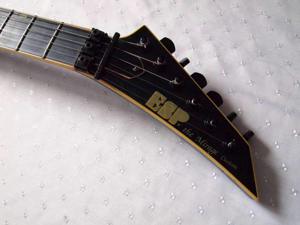 Маркеры-перламутровые прямоугольники смещенные к 6 струне, лого ESP на 12 ладу