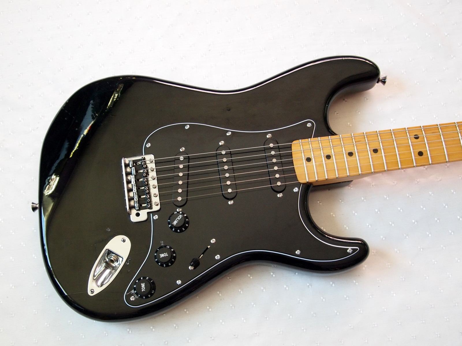 Большеголовый Ясеневый Стратокастер, радикально черного цвета с черной же фальшпанелью, черными крашками датчиков и ручками регулировки, сделанный старательными японцами со всей их тщательностью по точной спецификации 72 года. Эта гитара Е-серии, что очень ценится коллекционерами и музыкантами, она выпущена в 1985 году на заре производства Fender в Японии, для своего 40 летнего возраста находится в очень хорошем состоянии.
