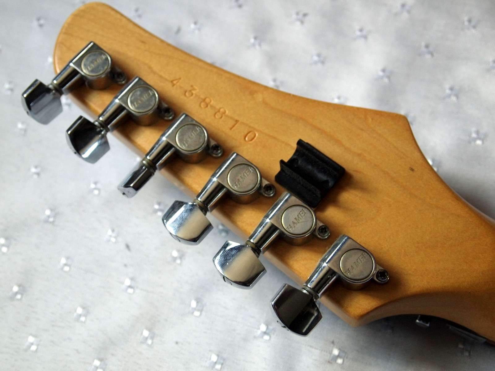 Реверсная голова грифа, стратокастеровское гнездо под джек перевернутое вверх ногами и размещенное на ребре корпуса для того чтобы шнур не мешал при игре сидя.