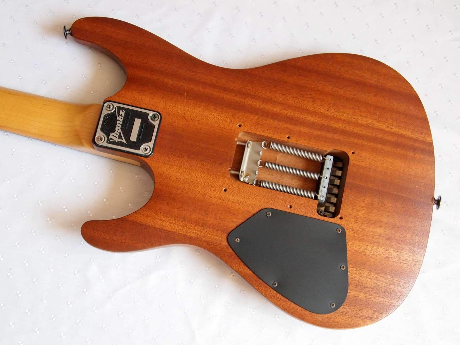 Гриф-клен, радиальный распил,прикрученный (bolt on) с железным подпятником,мензура: 25.5” (648 мм)