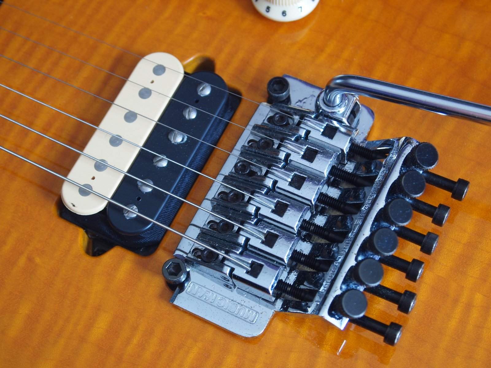Два хамбакера Dimarzio Custom Wound, установленные прямо на корпус без всяких паразитирующих рамок и пружин.