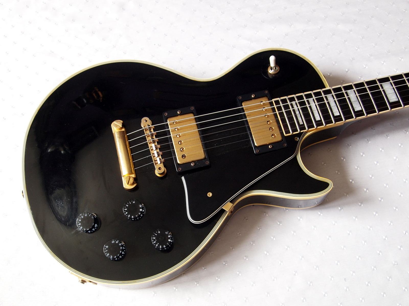 Les Paul Custom от Orville — японской компании, являющейся дочерним брэндом фирмы Gibson и выпускающим не копии, а инструменты по оригинальной документации. Звук описывать не имеет смысла — классика !