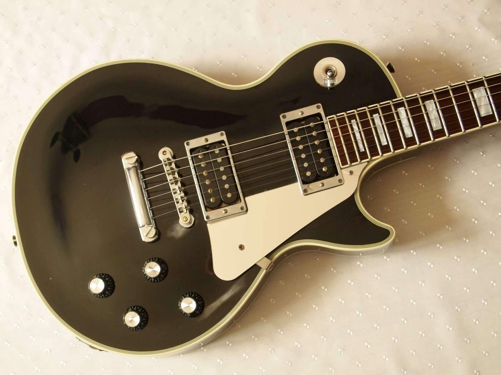 Les Paul Custom от Orville-японской компании являющейся дочерним брэндом фирмы Gibson и выпускающим не копии, а инструменты по оригинальной документации. Это инструмент оборудованный звукоснимателями Seymour Duncan, хромированным железом и хромированными рамками датчиков в духе инструментов John Sykes виртуозного гитариста отметившихся в таких командах как Thin Lizzy, Whitesnake, Blue Murder -очень нарядный инструмент с привычным саундом густым, немного скомпрессированным с "железным" призвуком при игре риффов.