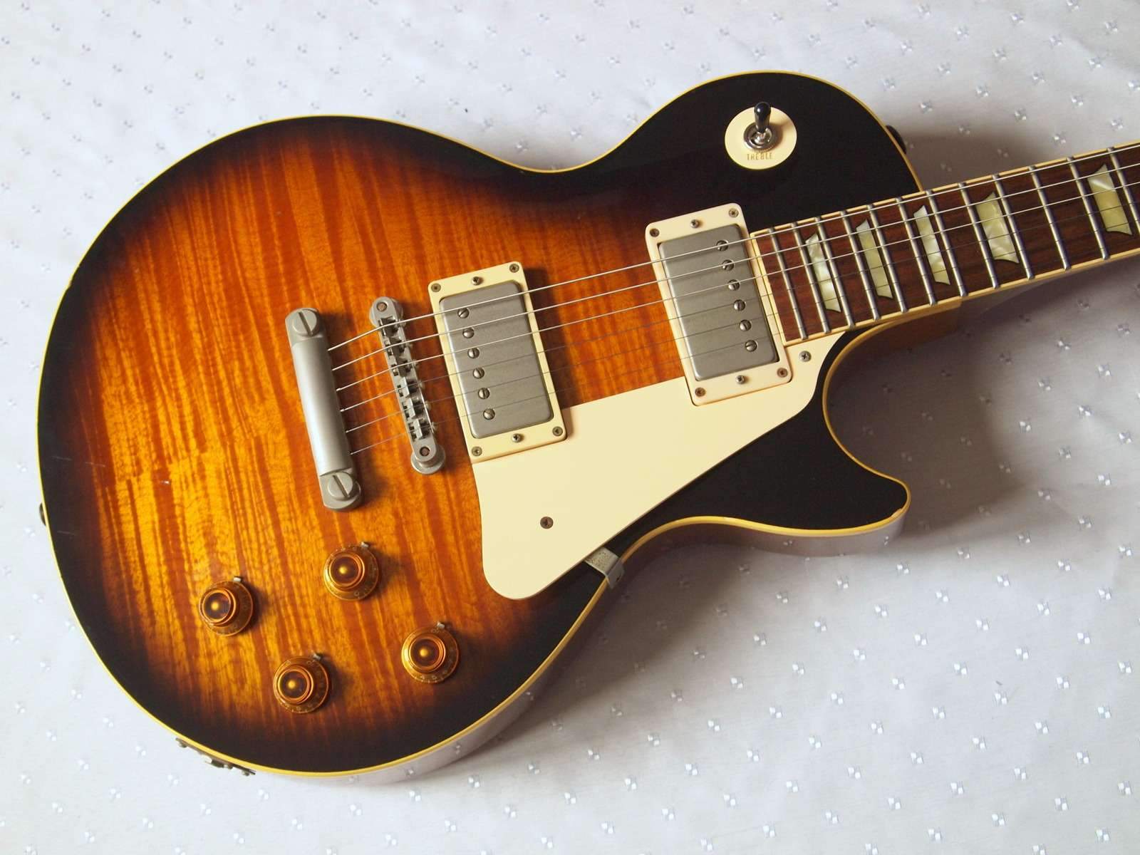 Чуть ли не самый лучший вариант LP Standard от японских производителей -Orville, невероятно красивый инструмент в цвете Tobacco Sunburst c топом из волнистого клена. Эти гитары производились по оригинальной спецификации Gibson и с соблюдением всего технологического процесса.