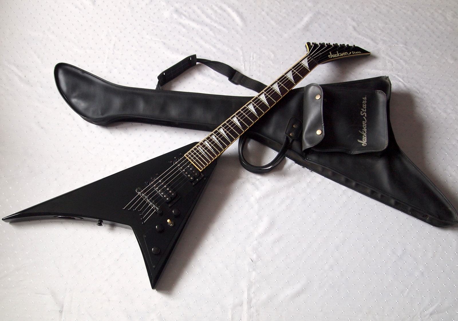 Редкий семиструнный сквозногрифовый внутрияпонский Jackson Randy Rhoads в радикально черном цвете и очень приличном состоянии.