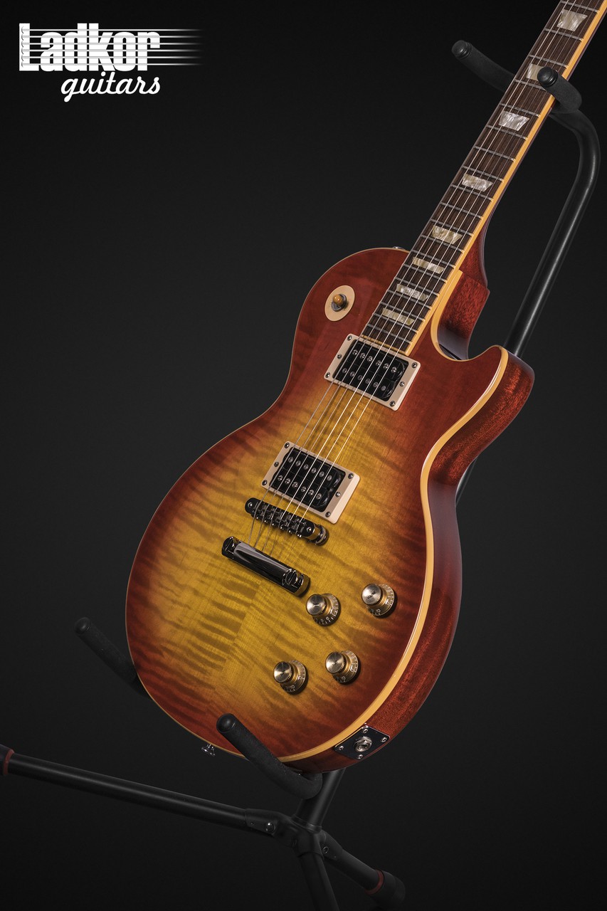 Эта модель — выпущена в ограниченном количестве скорее всего 400 экземпляров, как остальные гитары серии. Стандартный лес пол (дека и гриф красное дерево, кленовый топ и накладка палисандр). Классический санберст, присутствует роза на голове, присущая серии и винтажным лес полам, тигровый AA Maple Top и уникальное перо с окантовкой. Тонкий гриф 60 профиля. Стоят открытые пафы 57 classic - одни из самых классных гибсоновских звучков.