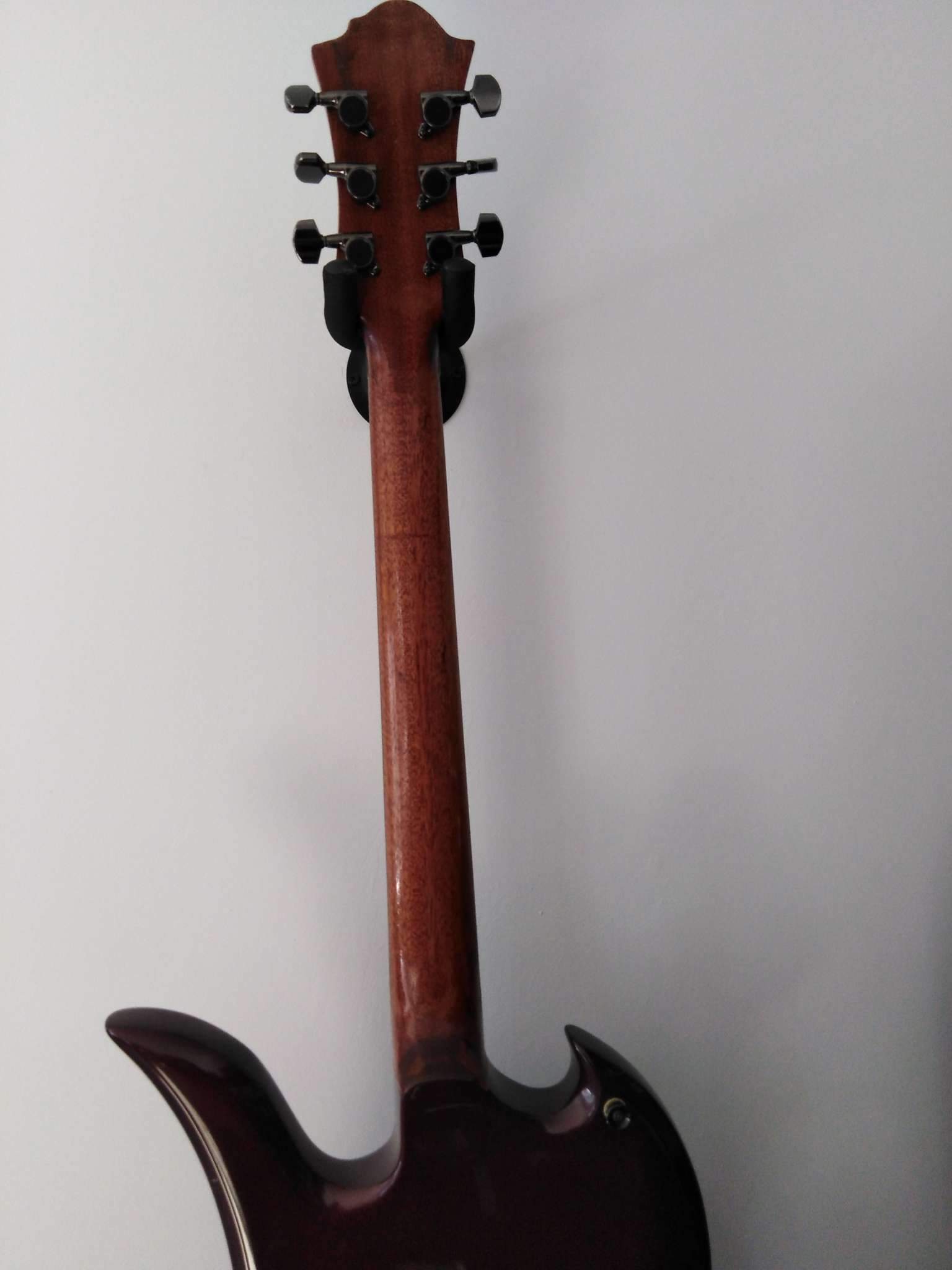 Гитара японского происхождения, из начала 90-х. Была произведена замена электроники, экранировка, фурнитура от Gotoh заменена на новую. Мной также был изменен внешний вид - гриф сейчас находиться под слоем датского масла, видна фактура красного дерева, корпус подвергнут профессиональной перекраске. В комплекте фирменный мягкий чехол из кожзама. Косметически и функционально находится почти в идеальном состоянии. Звучит превосходно, за что эта серия и заслужила логотип R на голове грифа.