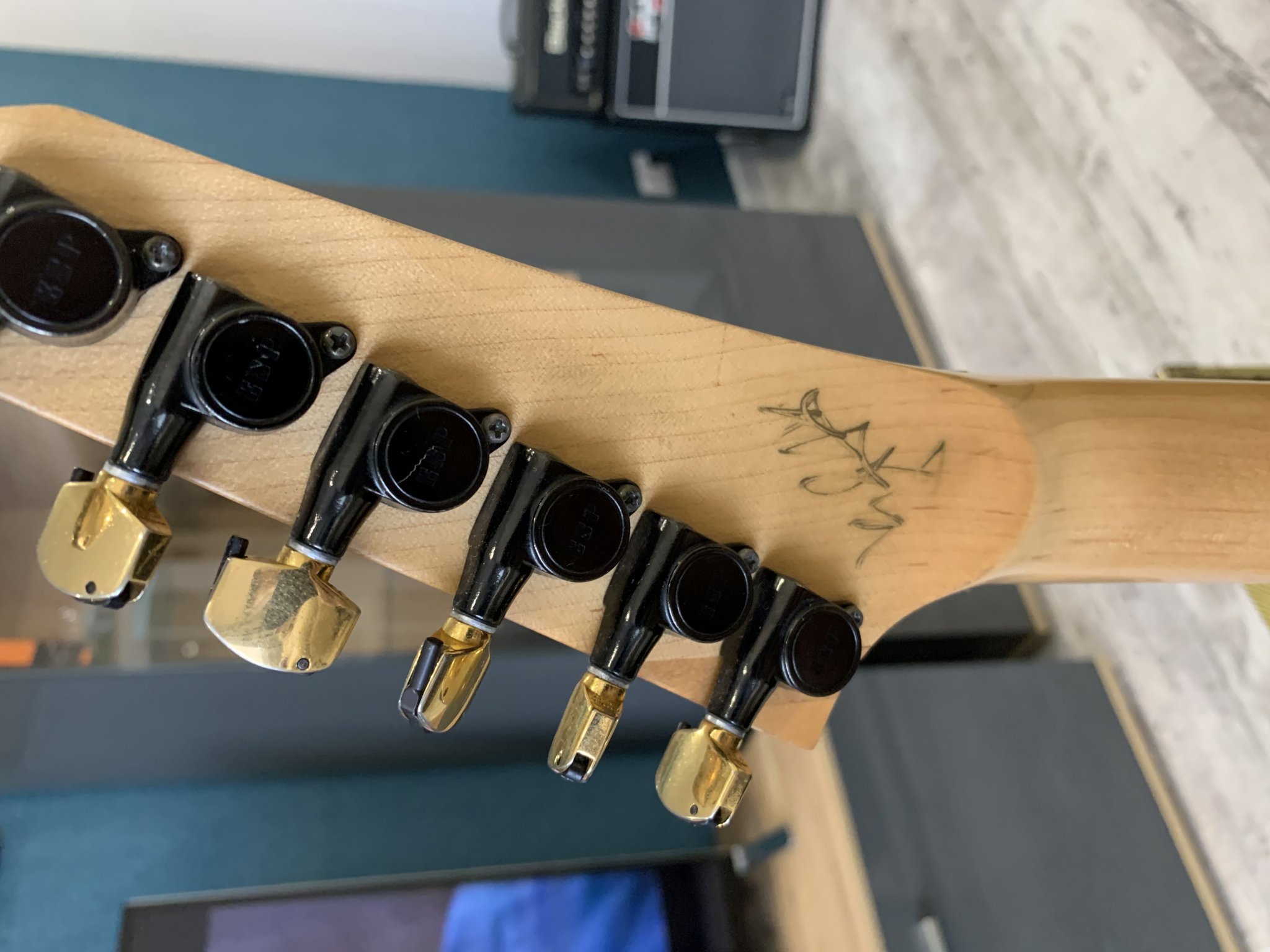 Вчера со мной связался предыдущий владелец инструмента и пролил свет на мировую тайну автографа на голове грифа.