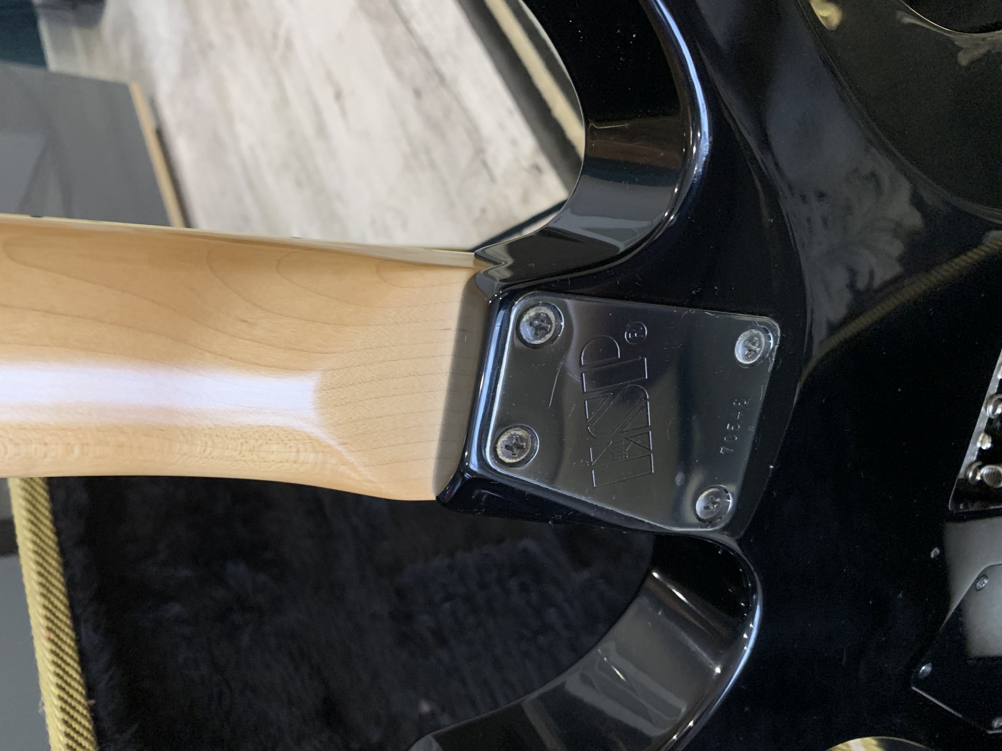Скажу сразу, к инструменту привыкал долго. После Jackson гриф казался чуть толстоват, что ли.. Да и сама гитара показалась мне тяжелее "махагониевого" Джекса (как ни странно). Но сбалансирована она прекрасно. Сидя играть очень удобно, на какую опорную ногу не переноси инструмент.
