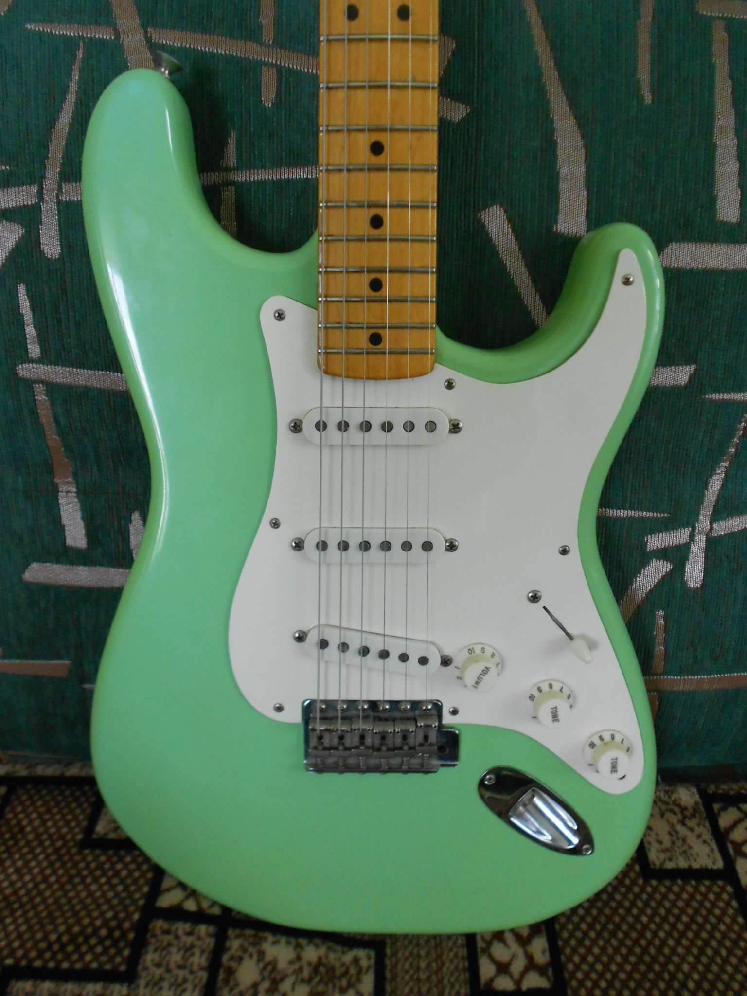 У гитары ранний серийный номер V011587 по которому можно предположить что деку и некплейт сделали ещё на заводе в Фуллертоне!