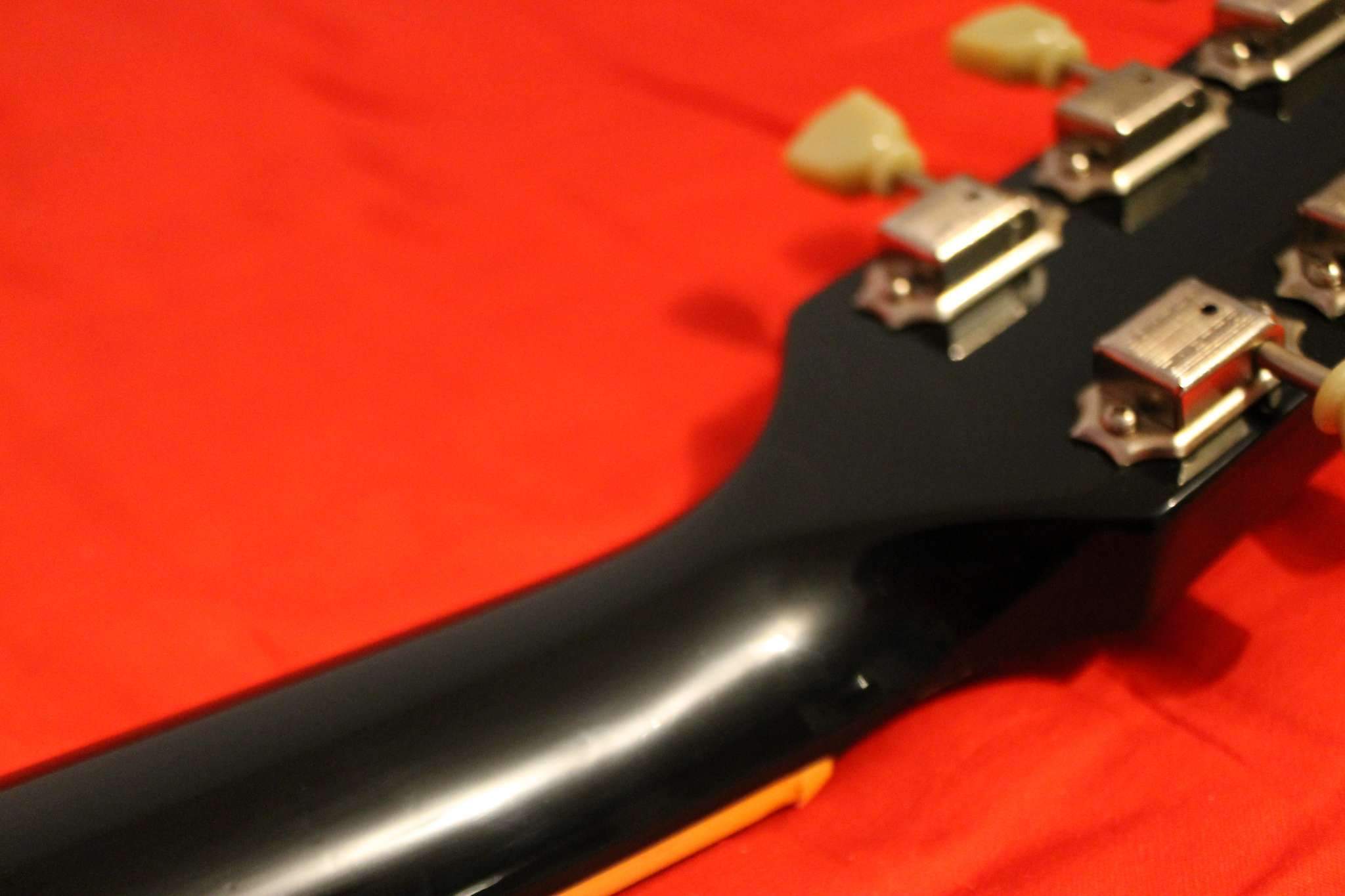 Марка и модель не требующая особого представления. Звучит очень плотно и насыщено. Имеет более тонкий шестидесятый профиль грифа 60's ( slim taper ) на котором очень удобно играть , особенно скоростные пассажи. Инструмент универсален. Подойдет как для акустических романсов/блюза, так и для трэш/дэт метала. Выдает читаемый в миксе звук. Даже бюджетный усилитель заставит раскрыться по новому. Одна из последних моделей начала двухтысячных, в которой корпус не опустошен ( not chambered ). Всё техническое оснащение оригинальное, за исключением креплений для ремня замененных на стрэплоки от данлоп (заводские держатели сохранились, отдам в комплекте). Выполнена в глубоком эбонитовом цвете с желтой окантовкой по периметру деки и накладки грифа. Гитара в очень хорошем косметическом состоянии, функциональна на все сто! Гитара идет с оригинальным фирменным кейсом оснащенным кодовым замком. Пикгард снят, есть в комплекте. В комплект с гитарой отдам стрэплоки, гибсоновский анкерный ключ,кофр и упомянутые выше оригинальные крепления для ремня. Гитару продаю из-за денежных затруднений.