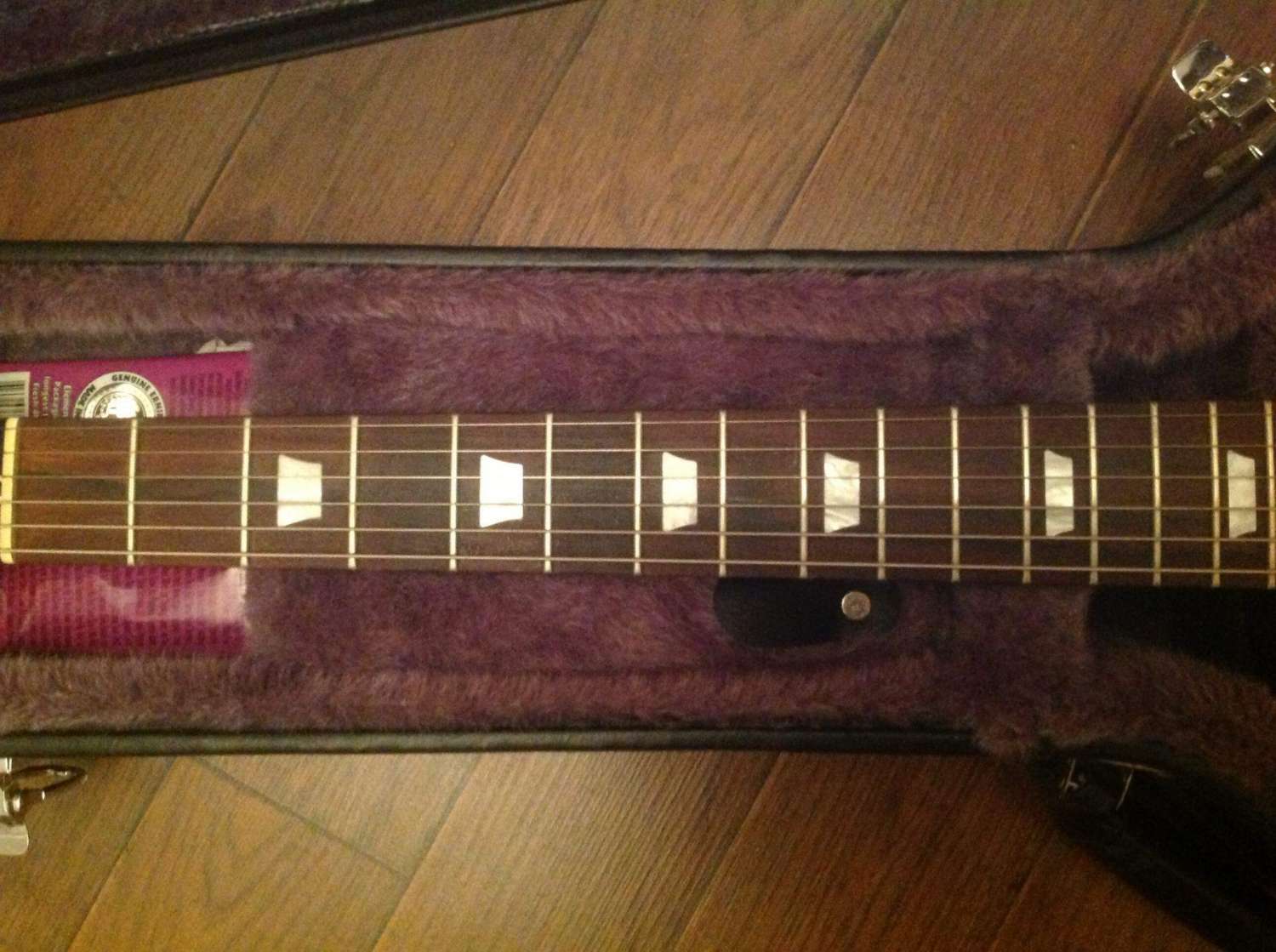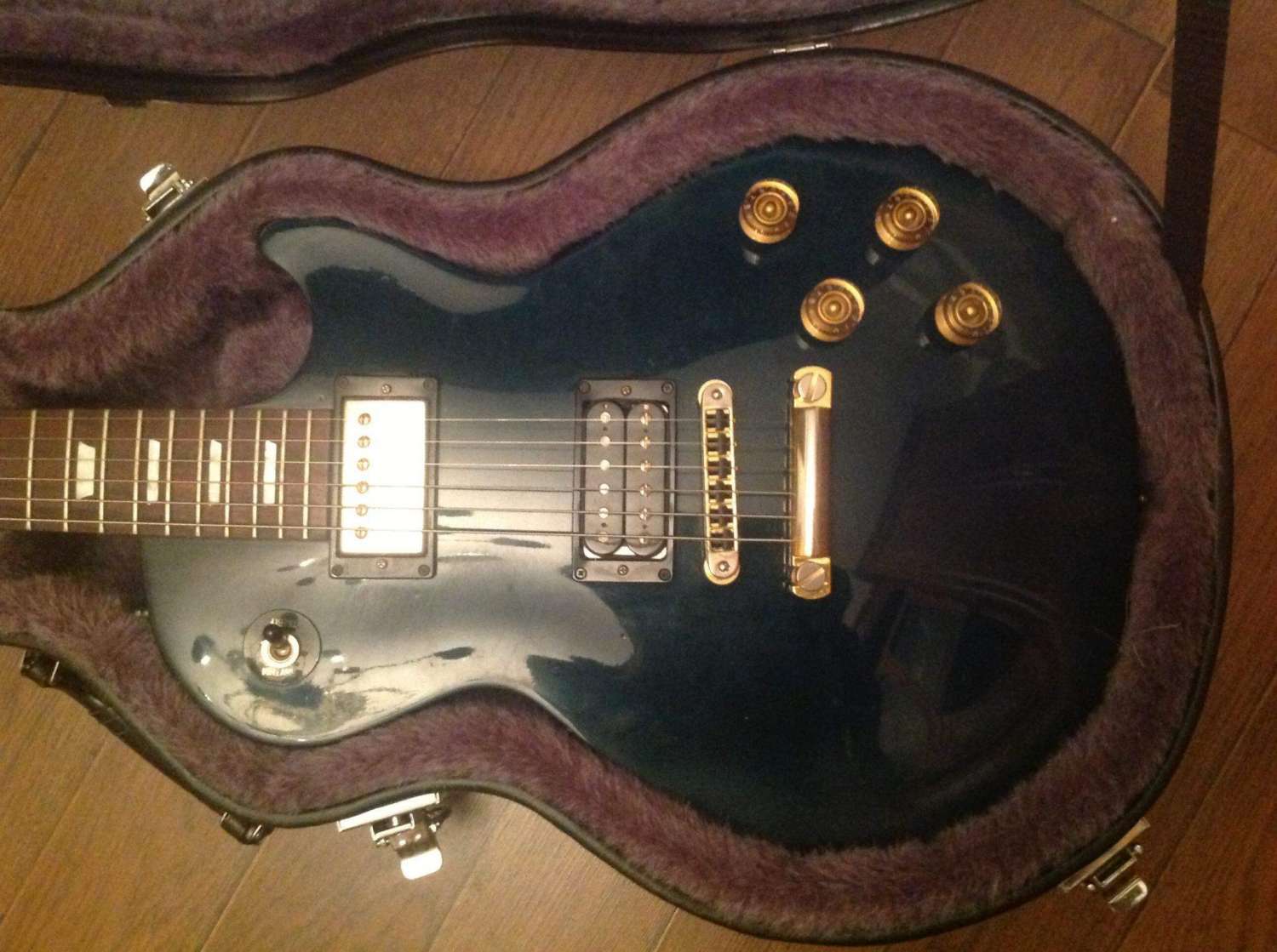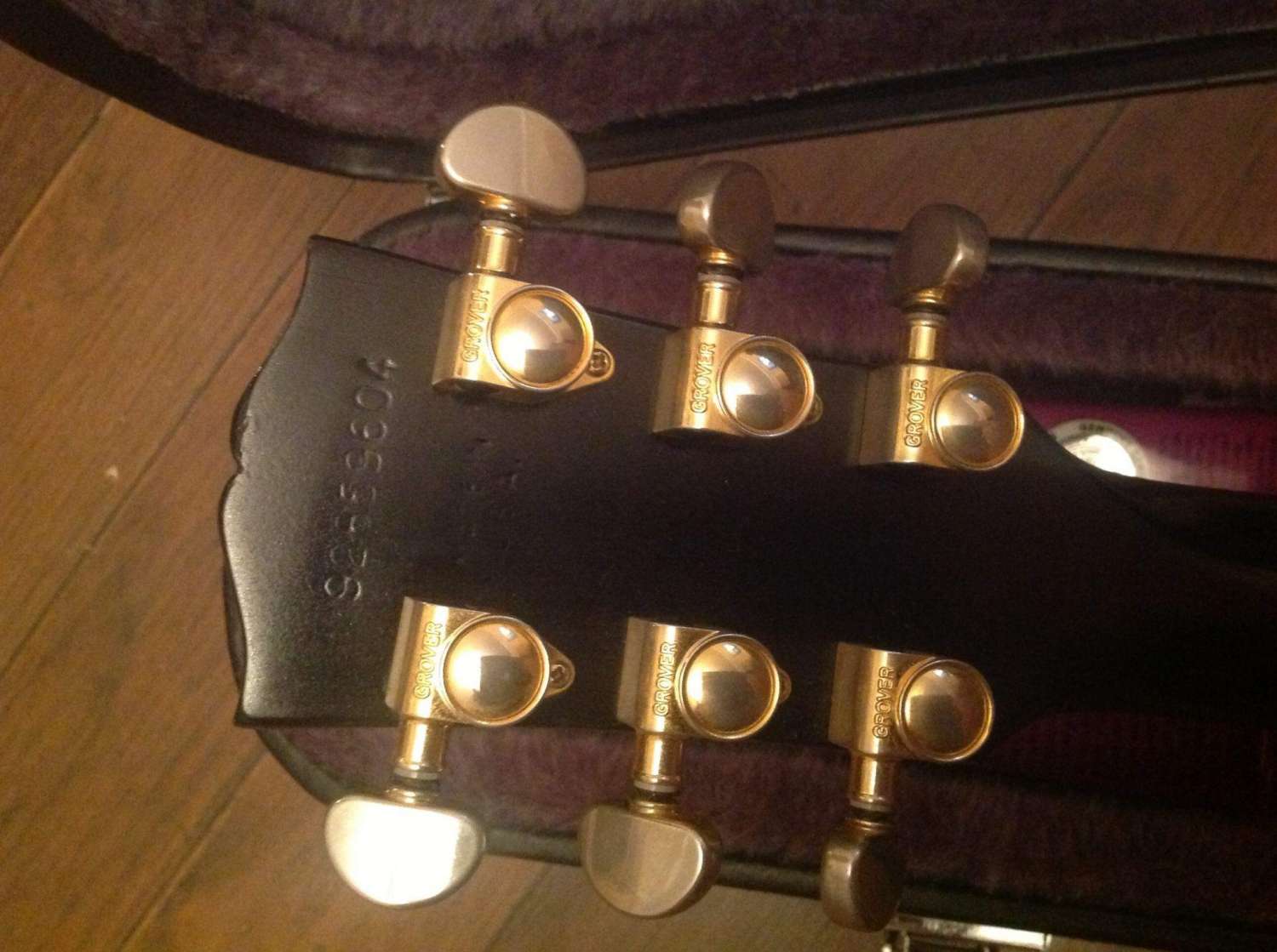 На момент покупки у гитары был снят лак с грифа. Скоро мне надоело его постоянно чистить и покрывать воском, и я отдал гитару мастеру. Теперь лак есть. Правда, немного пострадал серийник, но остался читаемым (см. фото). Также поменял электронику в темброблоке. Седла родные, несмотря на то, что на фотке стоят GraphTec . Крышку звучка и пикгард тоже можно разыскать. Звучки родные 490r-498t. В комплекте кейс Epiphone и ремень со