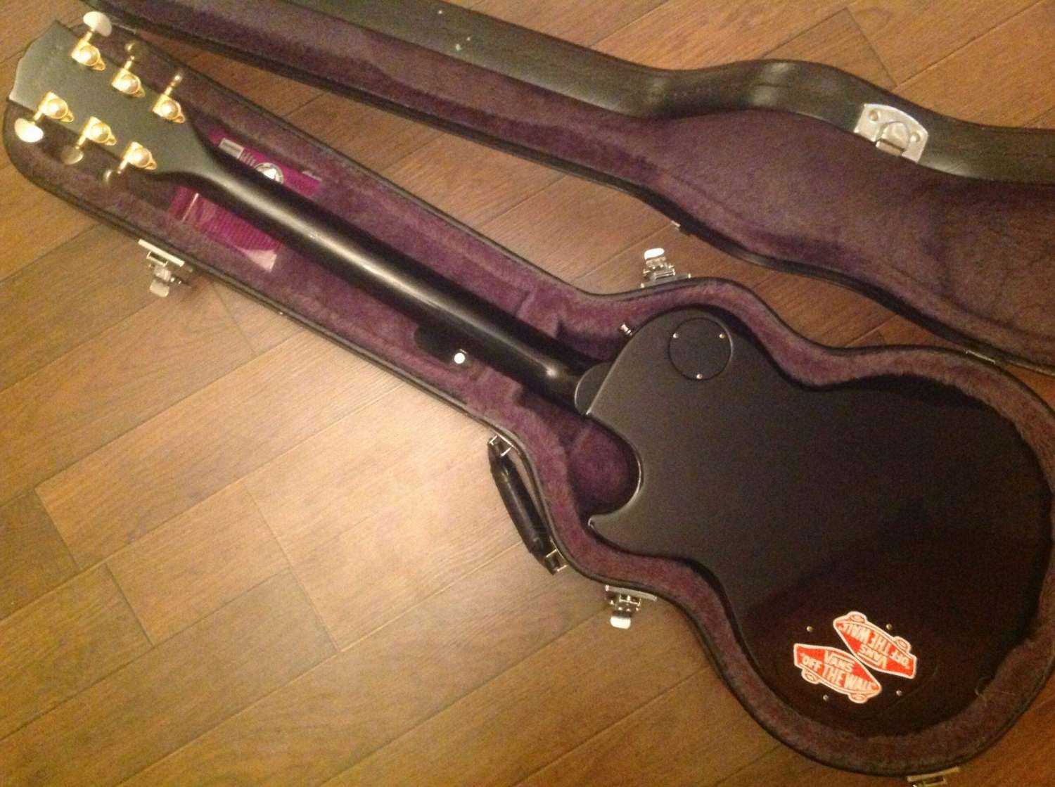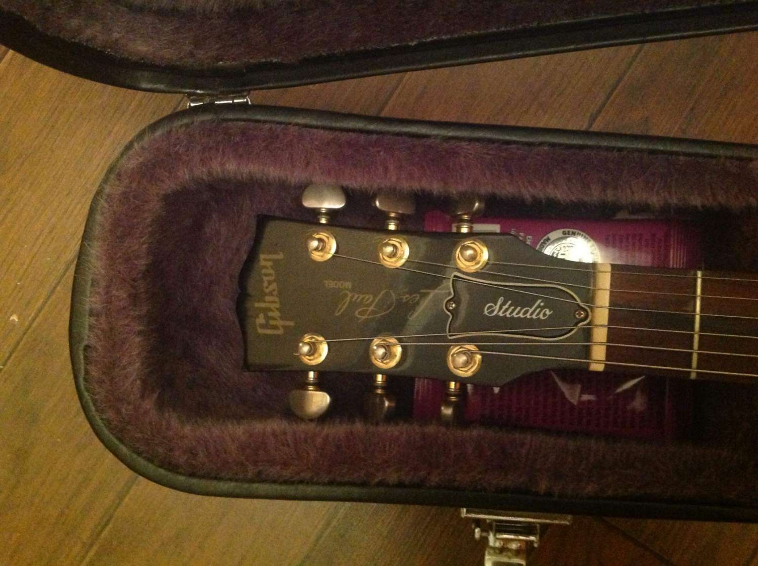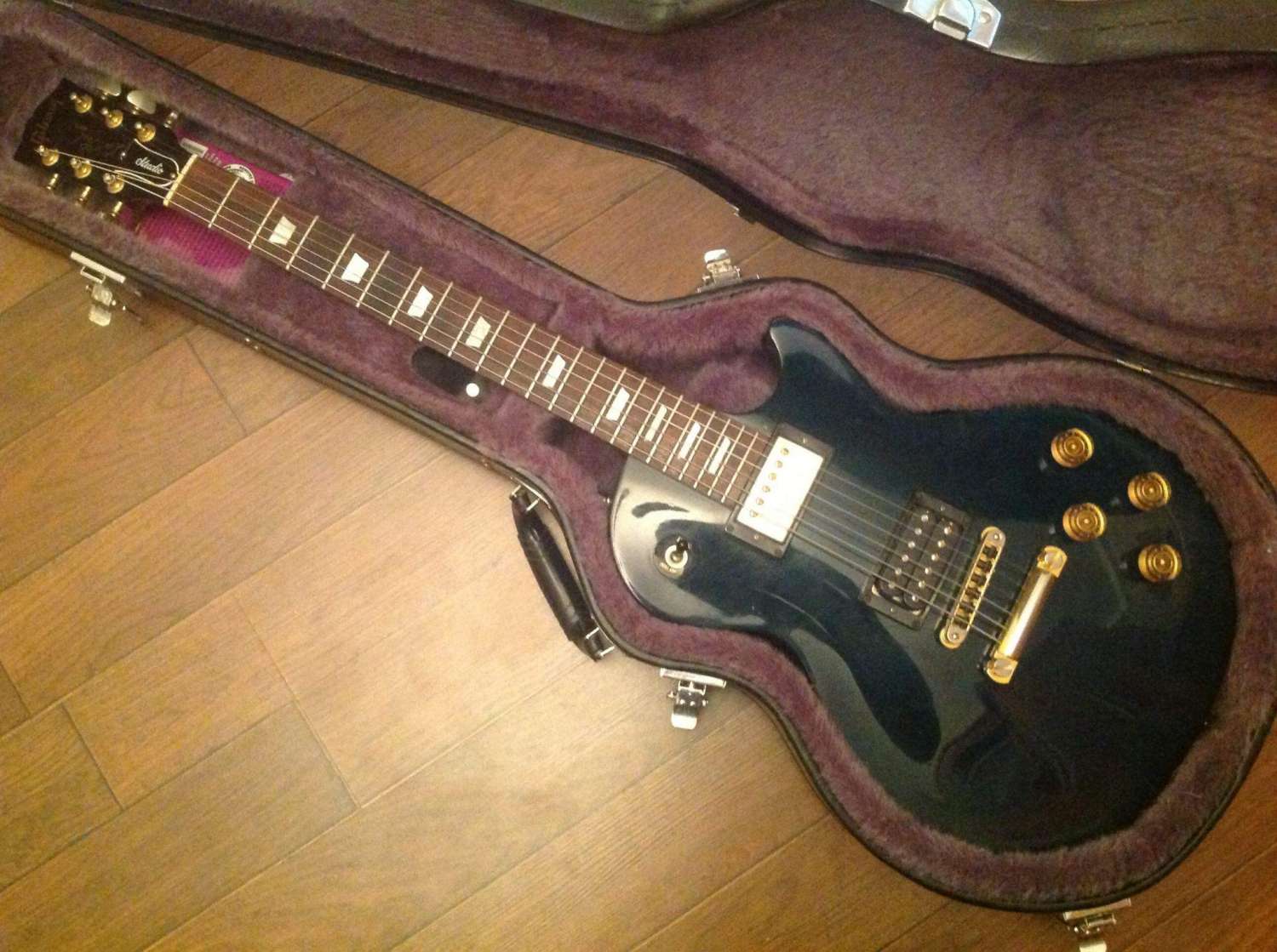На момент покупки у гитары был снят лак с грифа. Скоро мне надоело его постоянно чистить и покрывать воском, и я отдал гитару мастеру. Теперь лак есть. Правда, немного пострадал серийник, но остался читаемым (см. фото). Также поменял электронику в темброблоке. Седла родные, несмотря на то, что на фотке стоят GraphTec . Крышку звучка и пикгард тоже можно разыскать. Звучки родные 490r-498t. В комплекте кейс Epiphone и ремень со