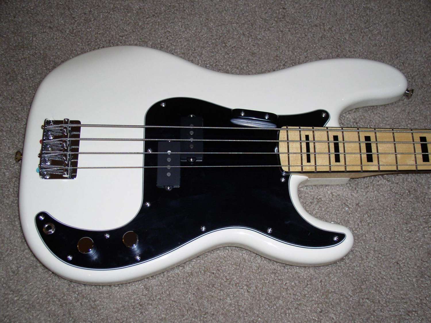 Washburn Silverado Custom Shop (USA) $700 Настоящий американский стратокастер сделанный в Чикаго в 1994 году. Корпус из отборного легкого ясени. Вощеный кленовый гриф без накладки, толстенький по типу старых теликов. Анкер работает как должен. 22 лада. Лады в хорошем состоянии. Инкрустация черные точки. Тремоло Wilkinson VS100. Колки автолоковые Gohoh с надписью Washburn. Инструмент держит стой мертво, можно как с флойдом бесноваться. Звукосниматели: Fender '57/ '62 Stratocaster, то бишь средний датчик не RW/RP. Переключатель 5ти позиционный, как на стратах. На корпусе, в основном на задней стороне деки есть множество маленьких царапин. Фальпанель не оригинальная. Все внутри заэкранировано фольгой. Потенциометры не скрипят... Инструмент звучит очень очень благородно! даст фору любому стандарту, без шуток...