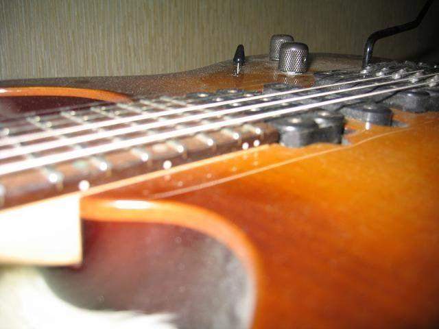 Гриф прямой, струны низко, звучки родные, бриджевый рычит и свистит на флажках вполне, нековый тоже звучит достойно. Потцы не хрустят, флойд идеальный. Колки GOTOH.