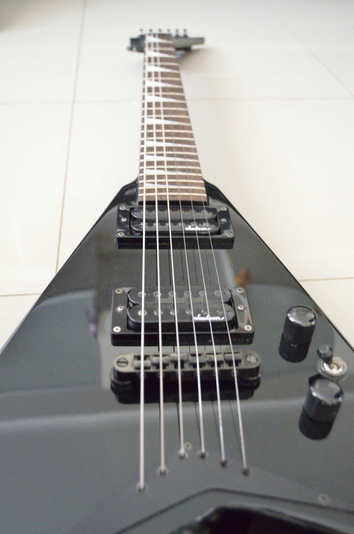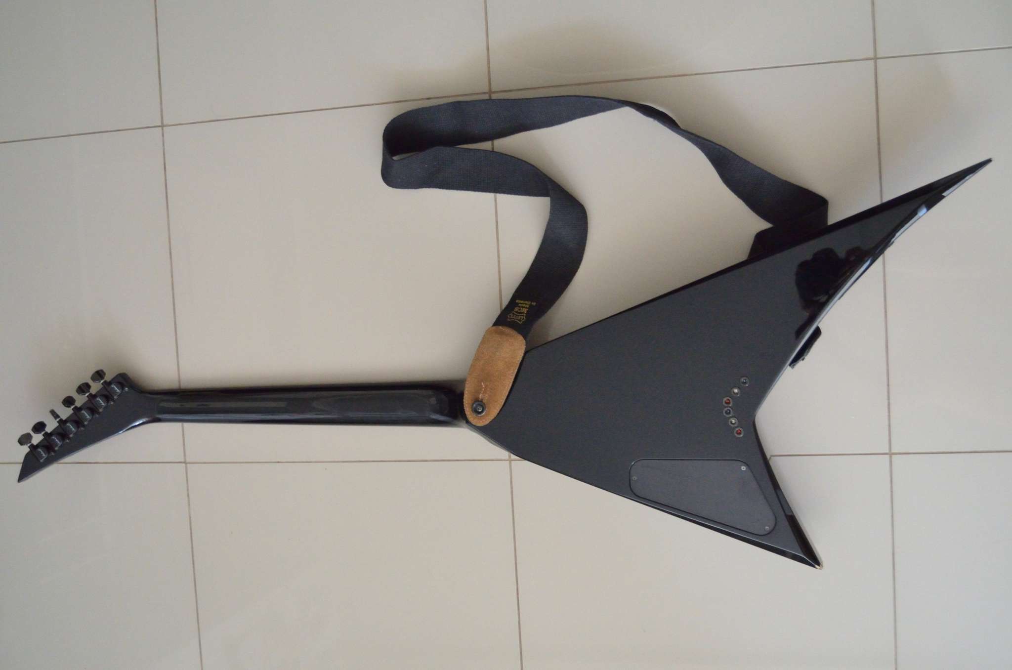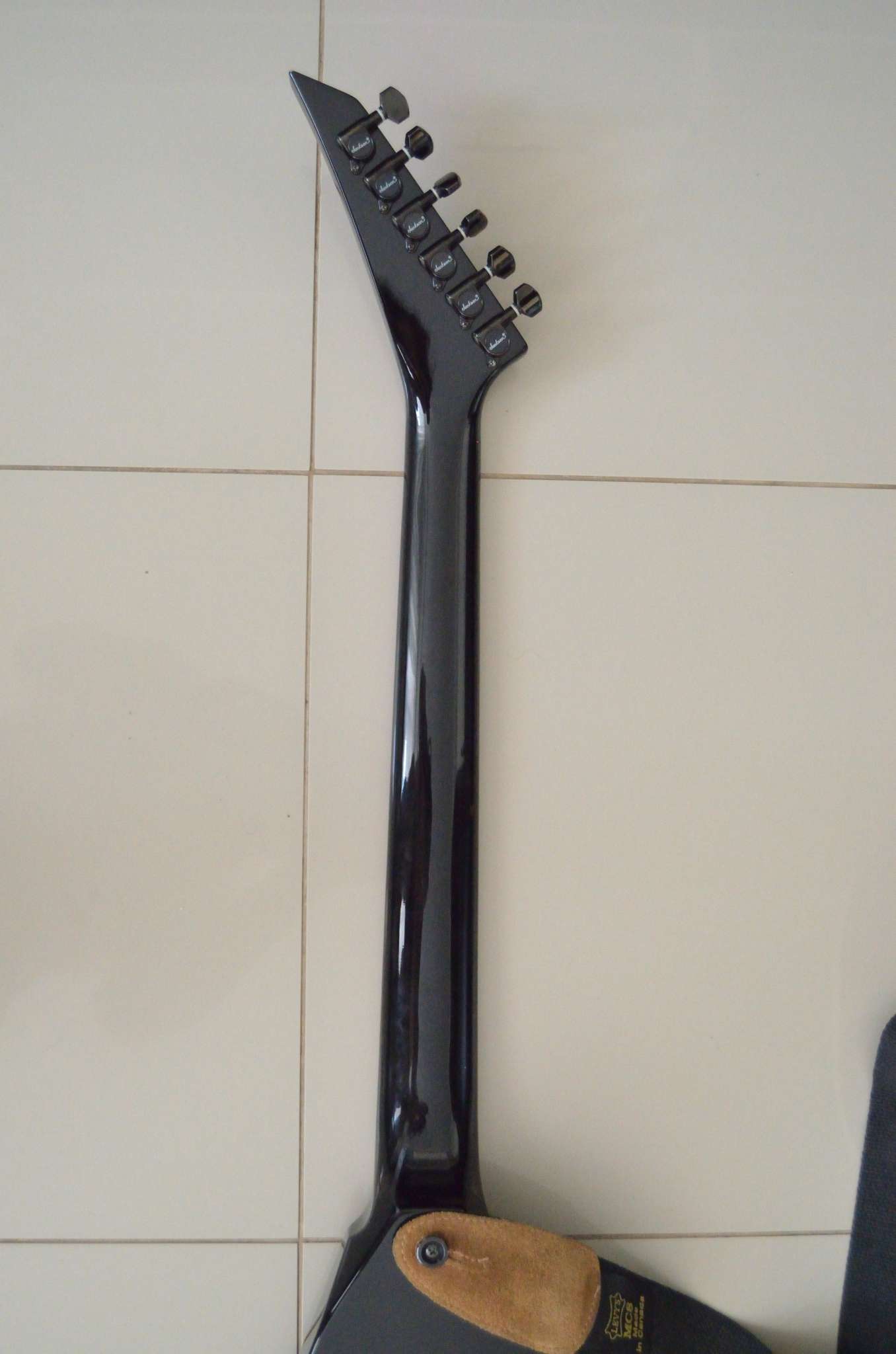 Гитара создана для металла. Надежная рабочая лошадка, минимум хрупких деталей, фиксированный бридж со струнами сквозь корпус, ведь флойд для слабаков со струнами на 8. Необходимый и достаточный минимум регулировок, хотя я бы даже тон убрал, зачем он в металле. Удобный доступ к верхним ладам за счет формы корпуса. Крутость на сцене +10 также за счет формы корпуса. Только не забудьте ремень опустить пониже. Есть потертости на рогах. В остальном идеальное состояние, полная готовность к ковке металла, вложений не требует. Хотя и блюзак на ней можно поерошить, чего там. Тут и тон пригодится...